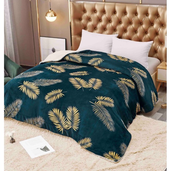 Patura CoCoLiNo cu blanita, 200x230cm, Jojo Home, Verde, Frunze, cod produs: JOJ-PCB-25