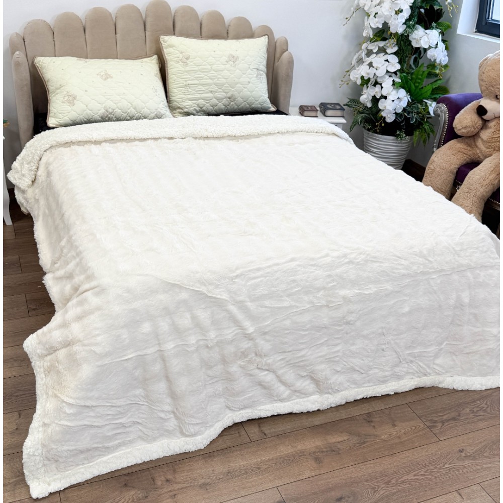 Patura Cocolino cu Blanita Sherpa 200x230cm, model cu Blanita Wave, Alb, Johny Home Pucioasa, cod produs: CSA-PTL-20