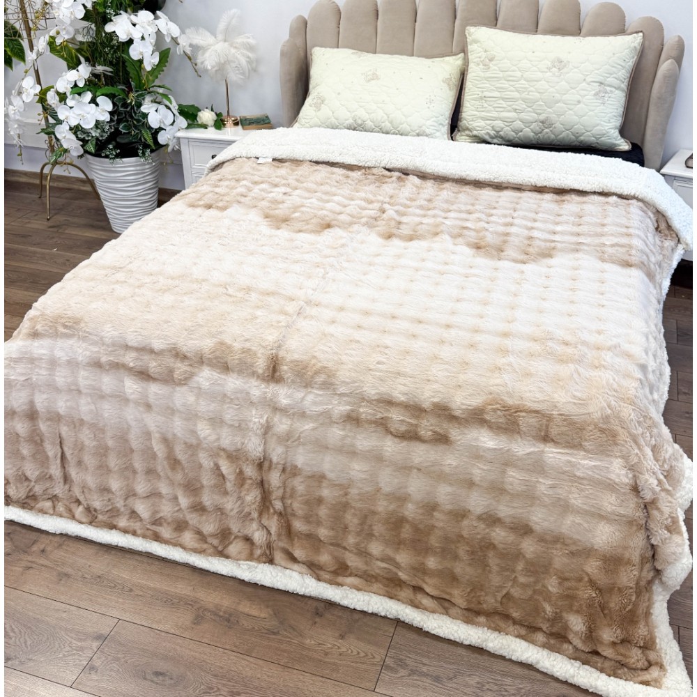 Patura Cocolino cu Blanita Sherpa 200x230cm, model cu Blanita Wave, Alb, Bej, Johny Home Pucioasa, cod produs: CSA-PTL-18
