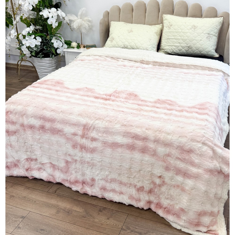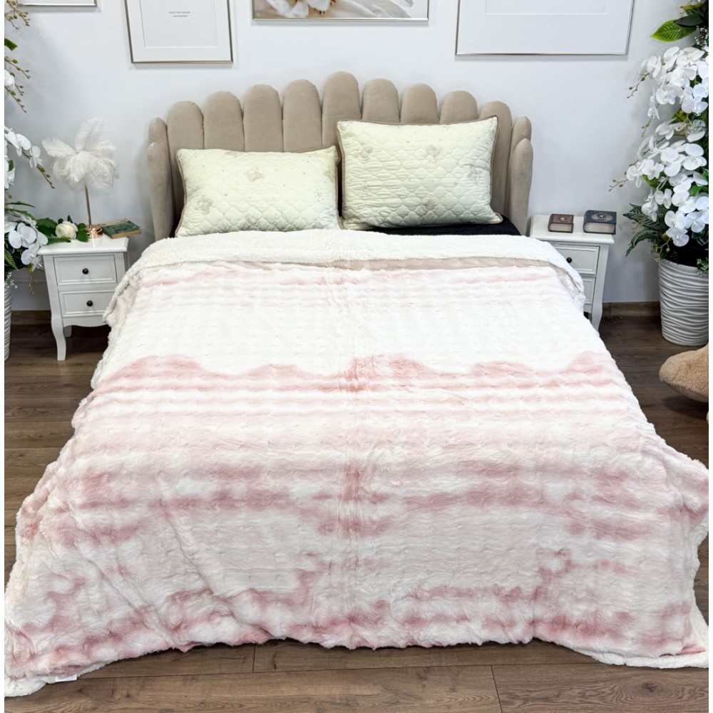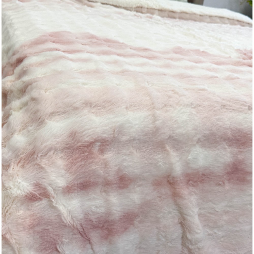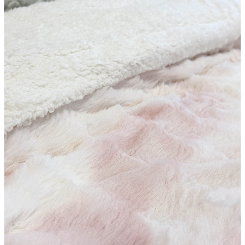 Patura Cocolino cu Blanita Sherpa 200x230cm, model cu Blanita Wave, Alb, Roz, Johny Home Pucioasa, cod produs: CSA-PTL-15