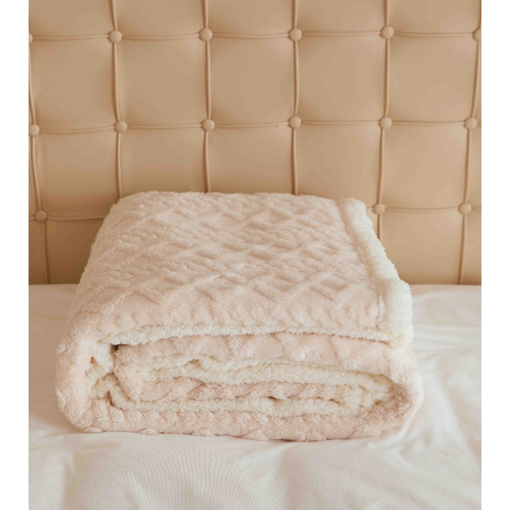 Patura CoCoLiNo tip Tricotaj cu blanita, 200x230cm, Jojo Home, Crem, cod produs: JOJ-PTT-07
