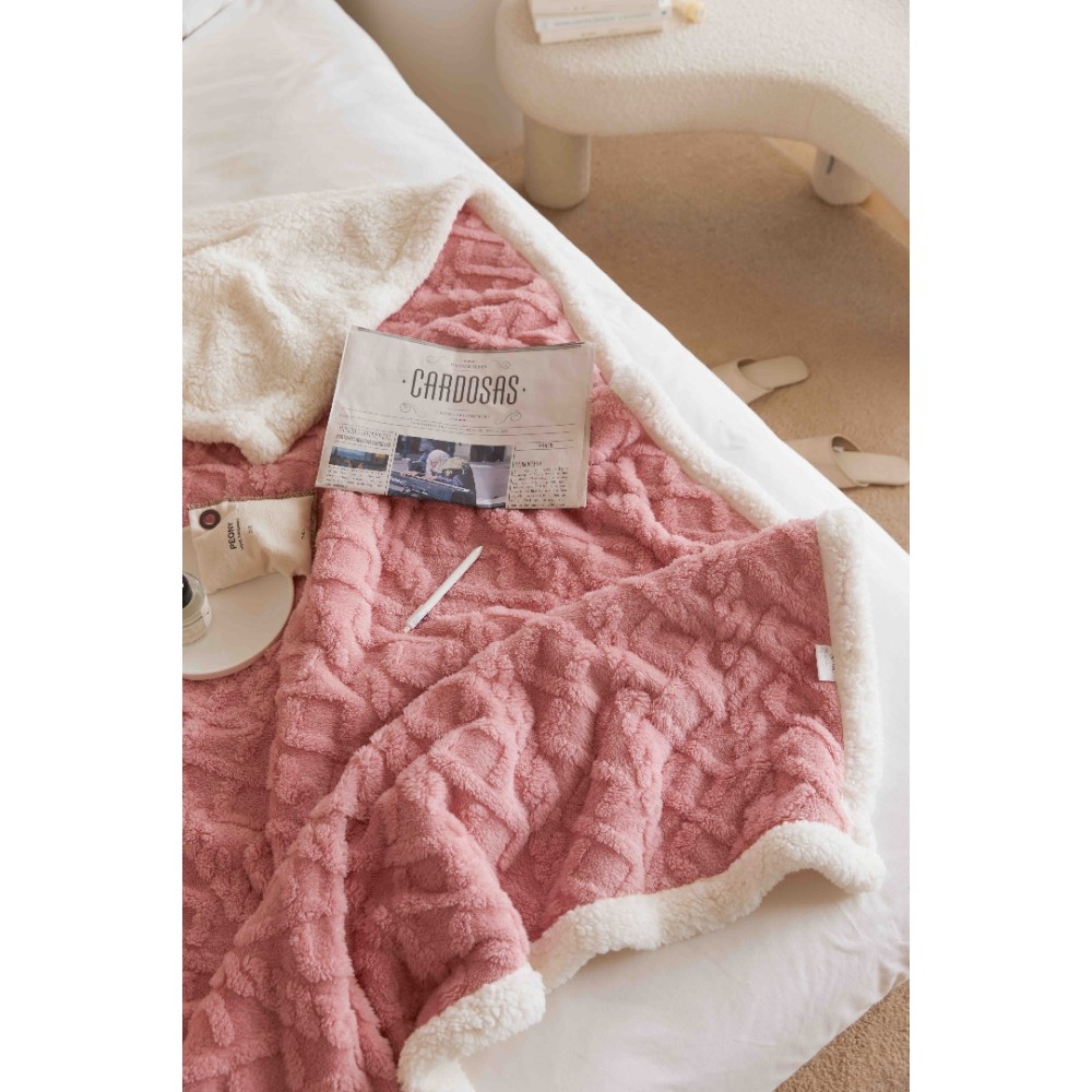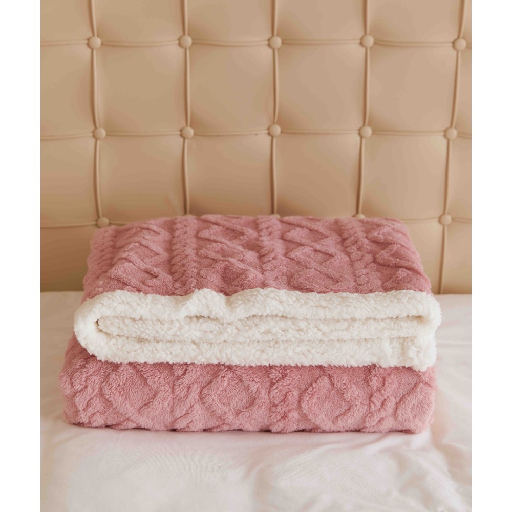 Patura CoCoLiNo tip Tricotaj cu blanita, 200x230cm, Jojo Home, Roz, cod produs: JOJ-PTT-10