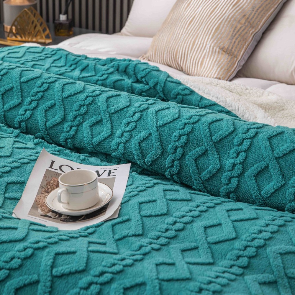 Patura CoCoLiNo tip Tricotaj cu blanita, 200x230cm, Jojo Home, Turquoise, cod produs: JOJ-PTT-08