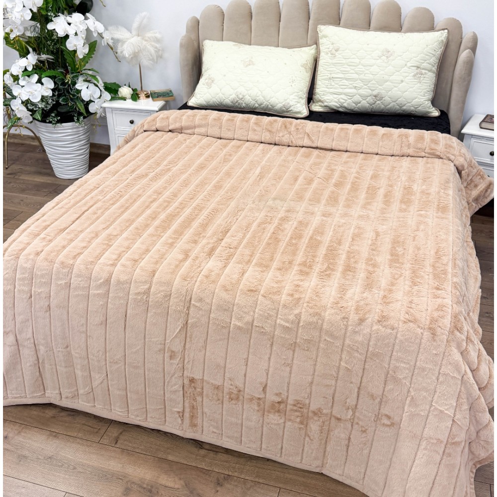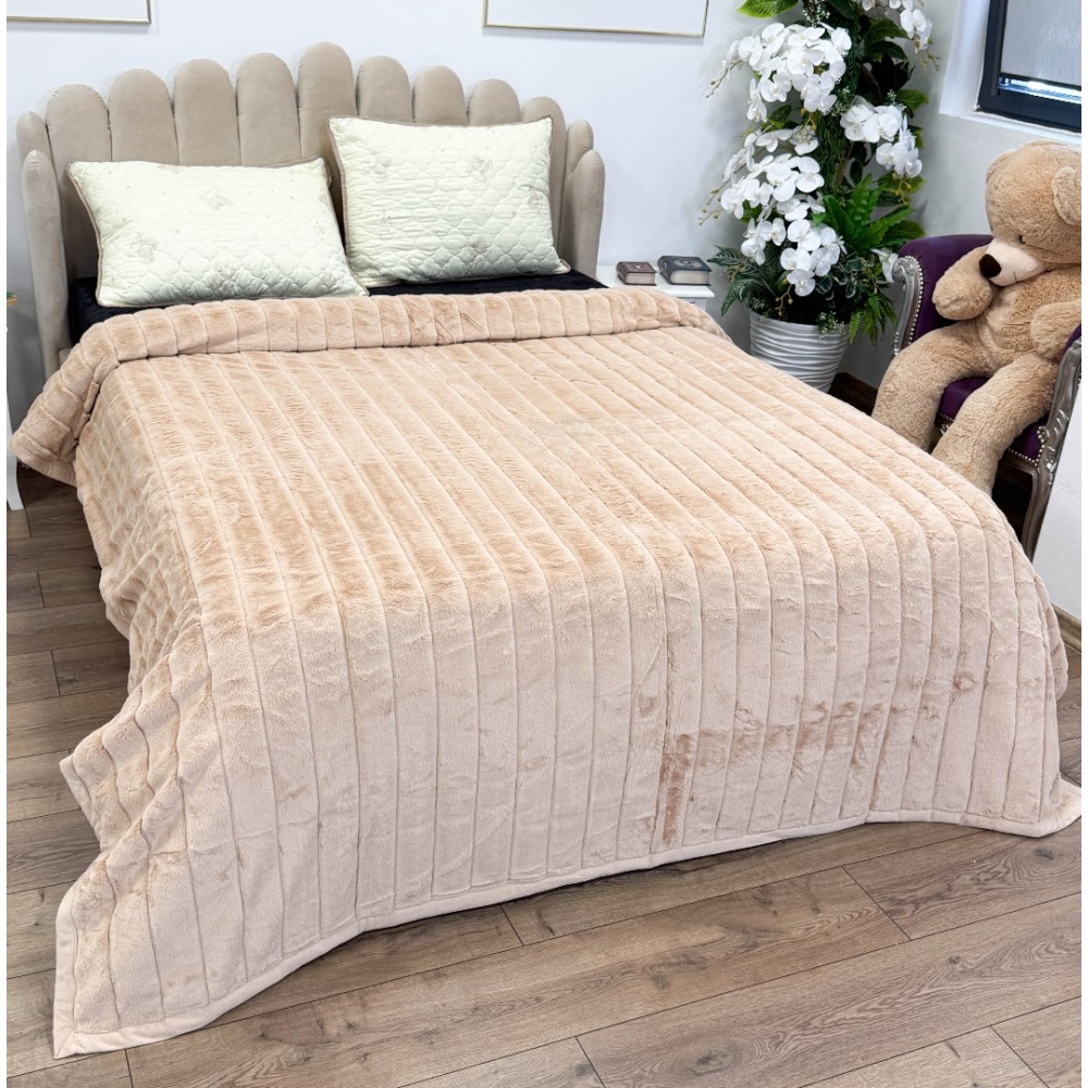 Patura Premium, Blanita Artificiala Fina, 200x230cm, Bej, Dungi, cod produs: CSA-PTL-06