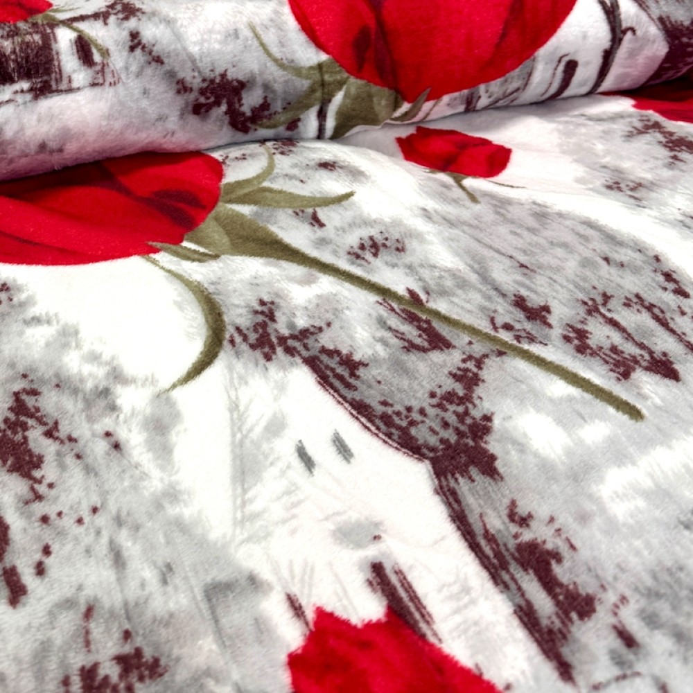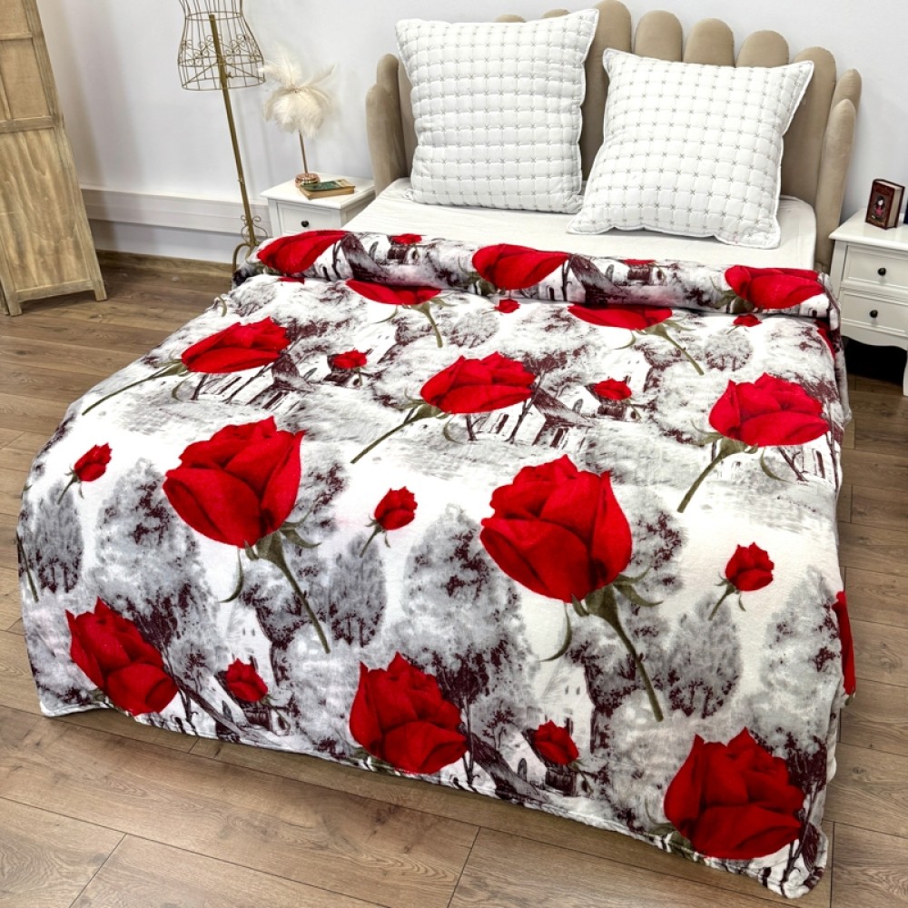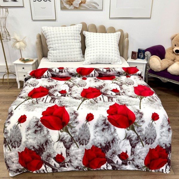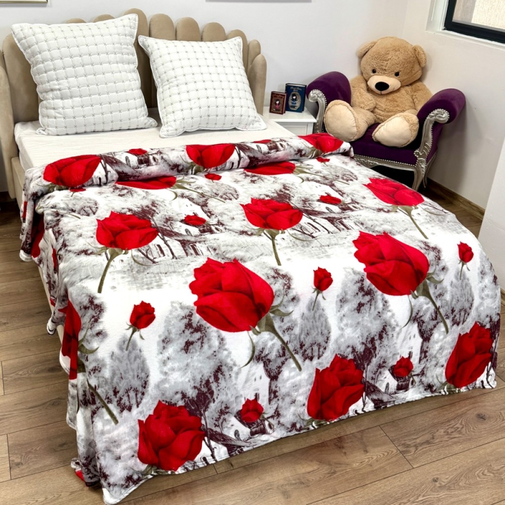 Patura pufoasa cocolino 200x230cm, 240g/mp, Alb, Gri, trandafiri, Super Design Pucioasa, cod produs: TRP-PT31