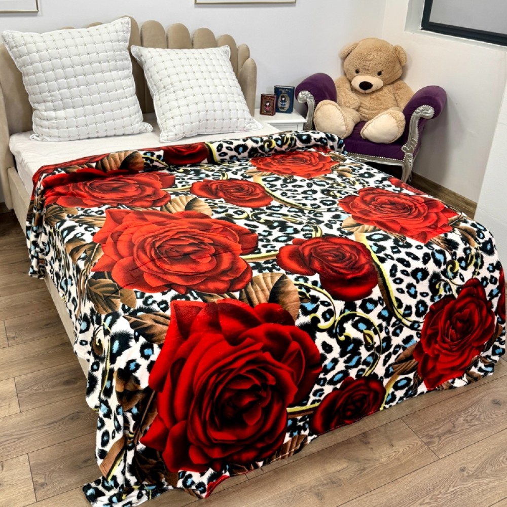 Patura pufoasa cocolino 200x230cm, 240g/mp, Alb, Negru, animal print, trandafiri, Super Design Pucioasa, cod produs: TRP-PT29