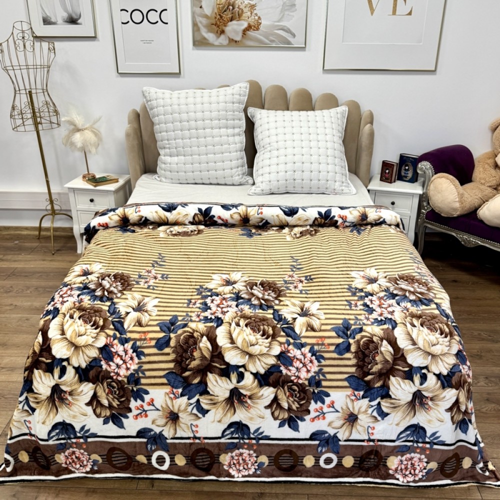 Patura pufoasa cocolino 200x230cm, 240g/mp, Bej, Maro, Flori , Super Design Pucioasa, cod produs: TRP-PT39