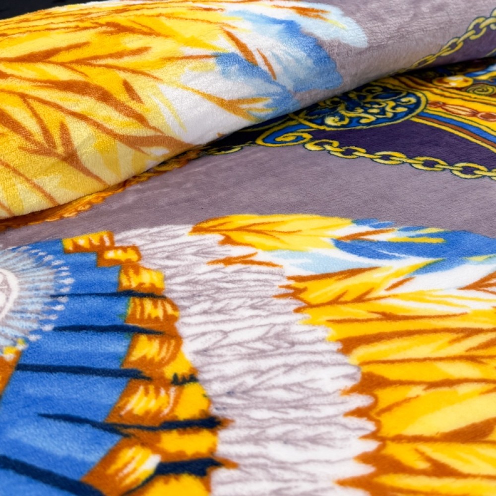 Patura pufoasa cocolino 200x230cm, 240g/mp, Cappuccino, Galben, Model Tribal, Pucioasa Fashion Casa, cod produs: SPR-PTR-15