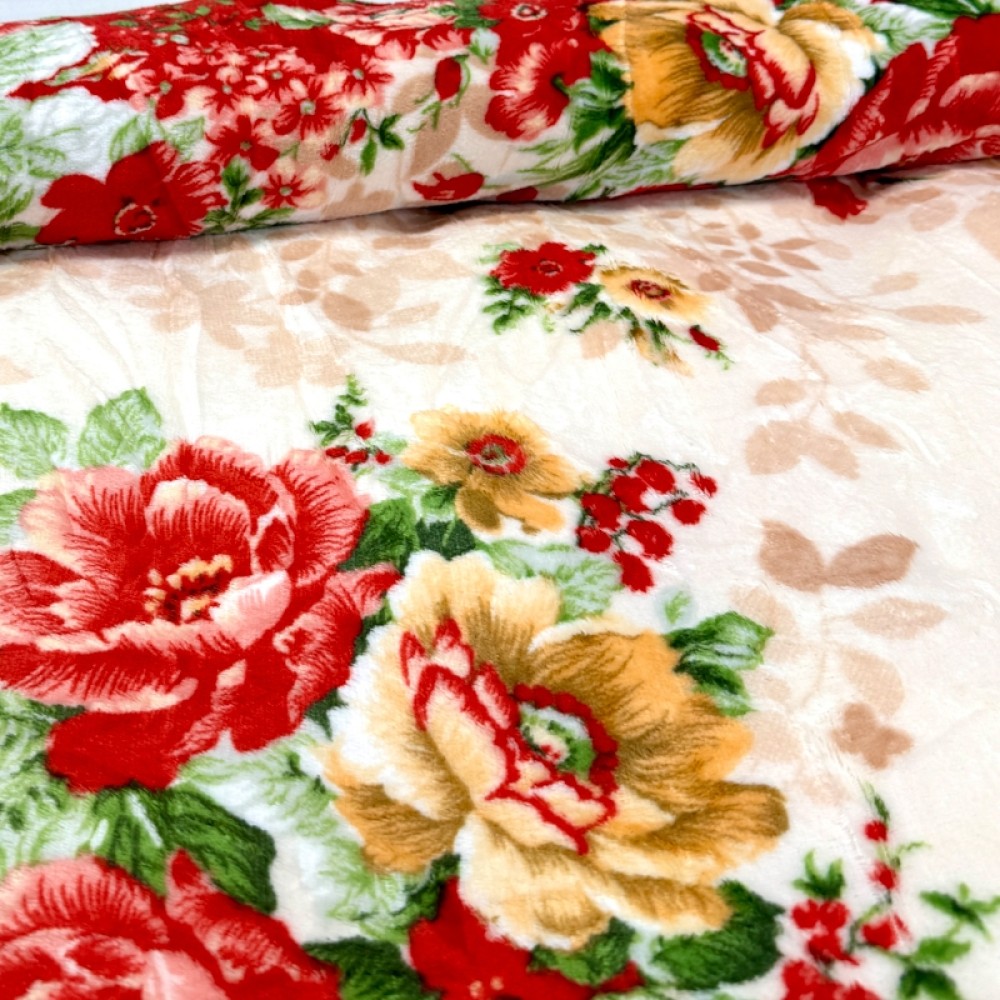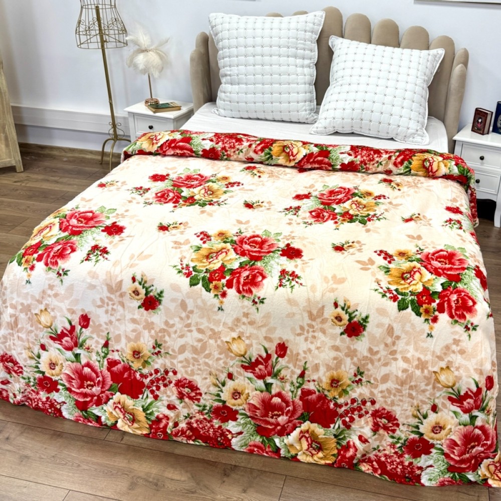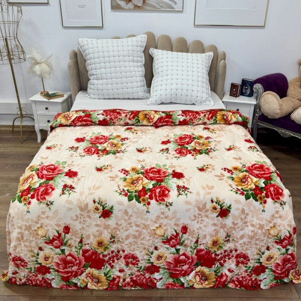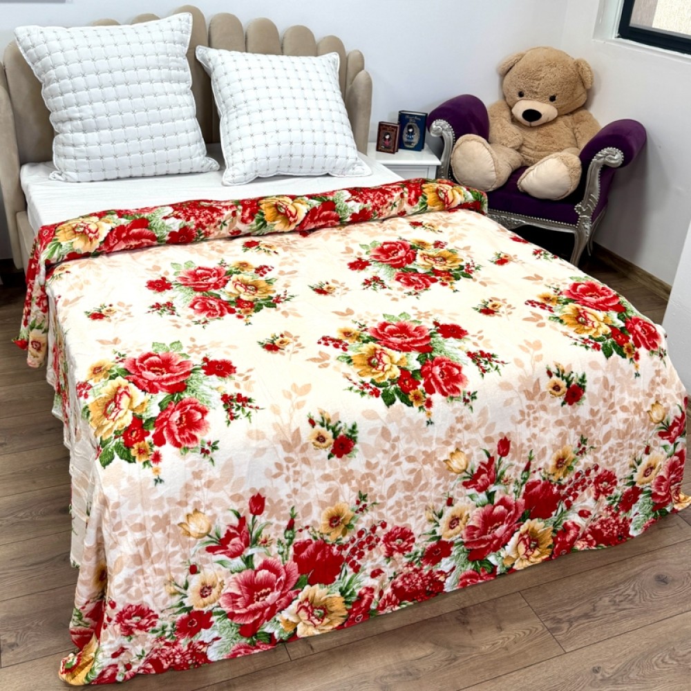 Patura pufoasa cocolino 200x230cm, 240g/mp, Crem, Rosu, flori, Super Design Pucioasa, cod produs: TRP-PT42