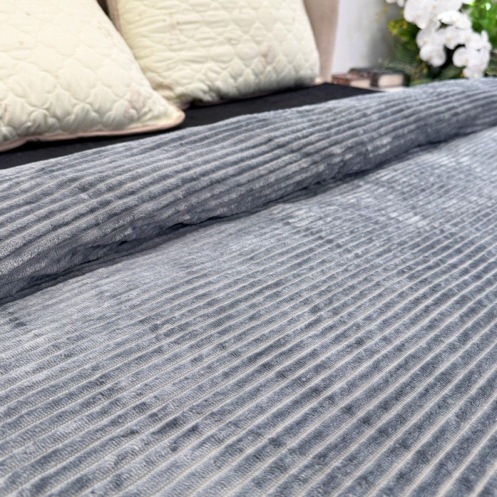 Patura pufoasa cocolino 200x230cm, 240g/mp, Gri, Dungi Gofrate, Pucioasa Fashion Casa, cod produs: SPR-PTR-13