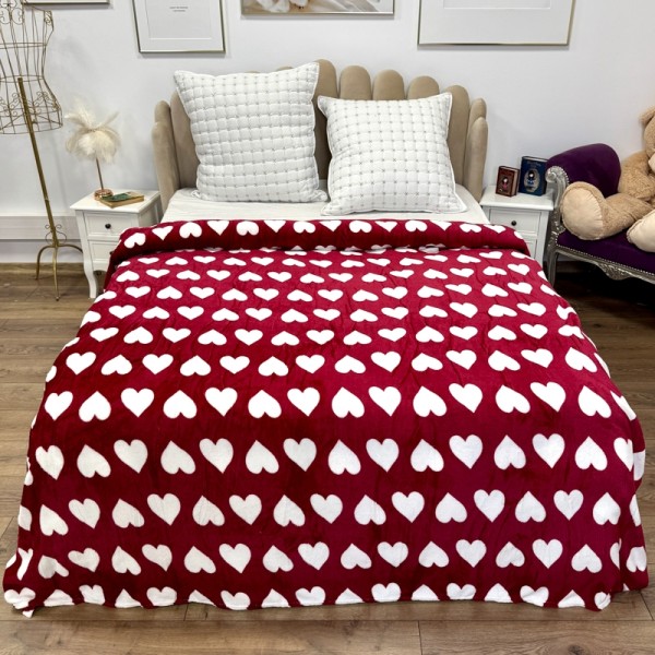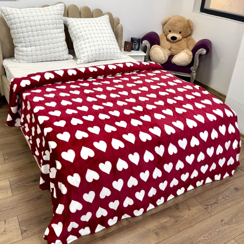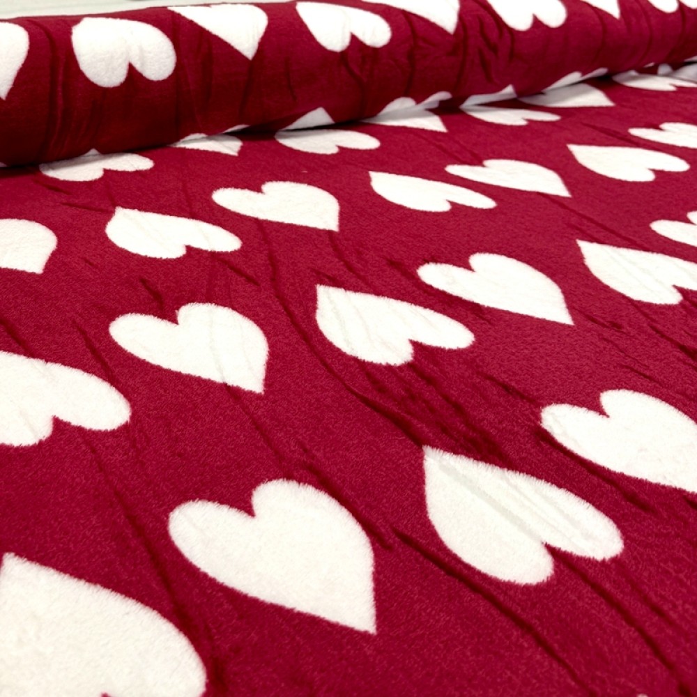Patura pufoasa cocolino 200x230cm, 240g/mp, Rosu, Inimi Albe, Super Design Pucioasa, cod produs: TRP-PT34