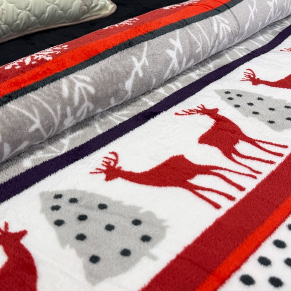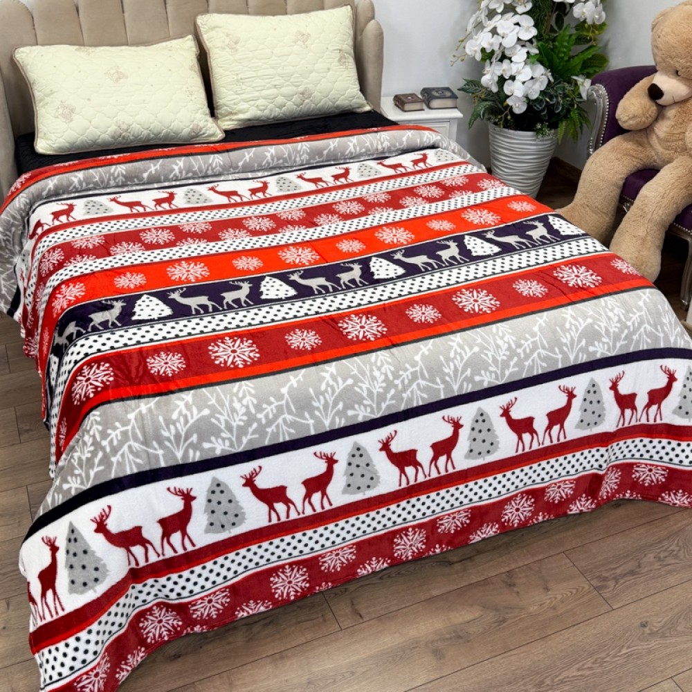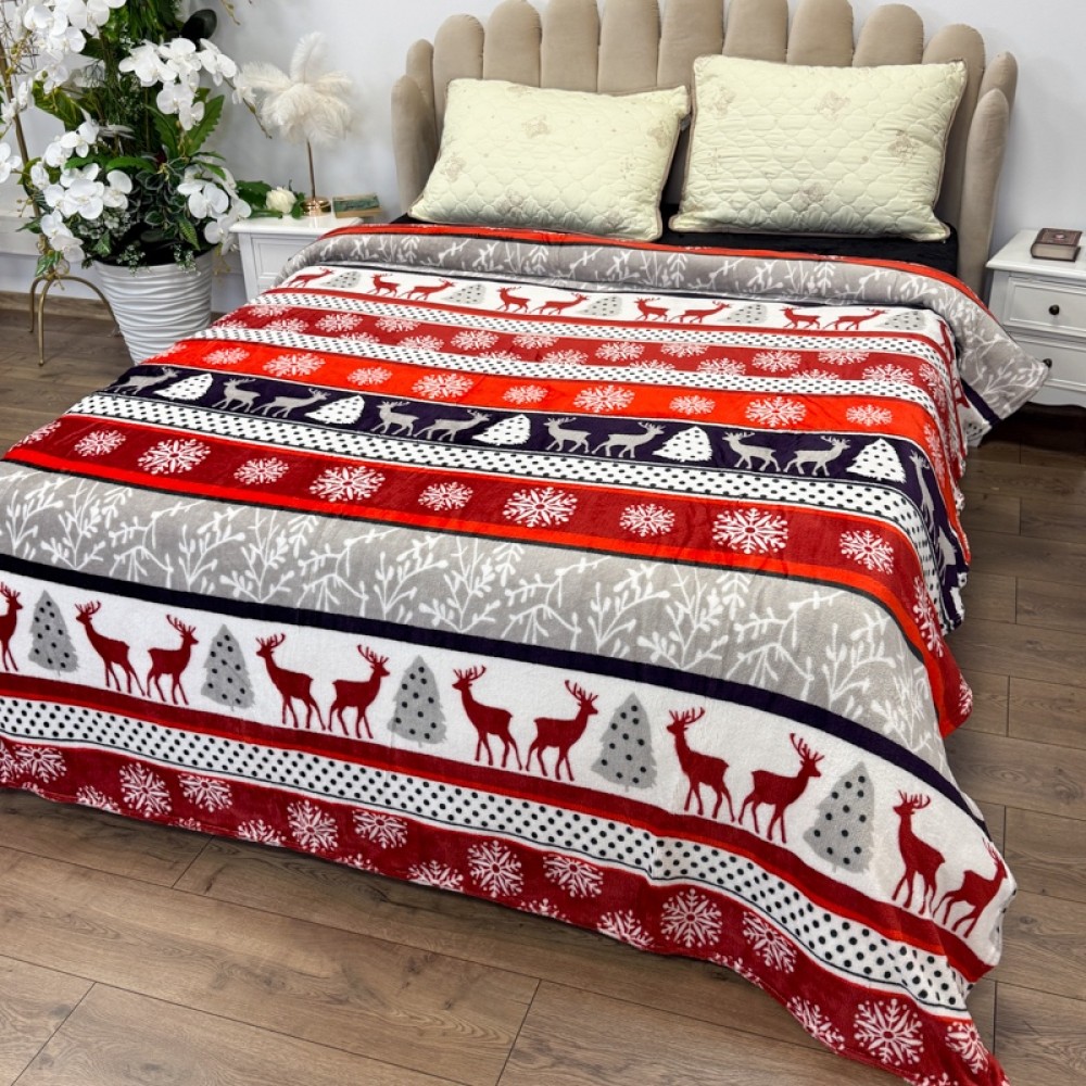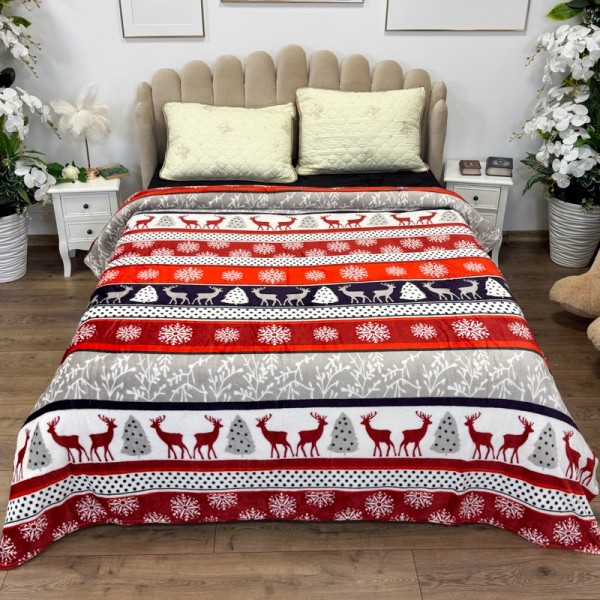 Patura pufoasa cocolino 200x230cm, 240g/mp, Roșu, Alb, Dungi, Reni, Pucioasa Fashion Casa, cod produs: TRP-PTX-09