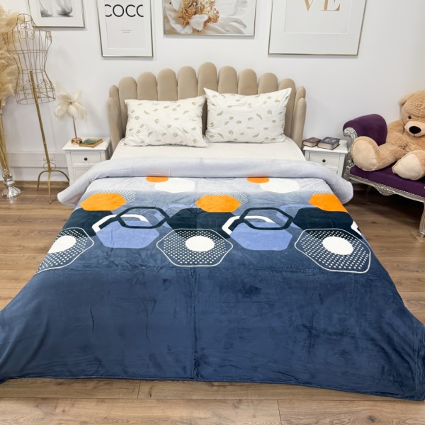 Pătură Super Soft Cocolino, 200x230 cm – Răsfăț absolut în zilele reci, Gri, Albastru, forme geometrice, Casa Creative Elegance Pucioasa, cod produs: BCC-PT14