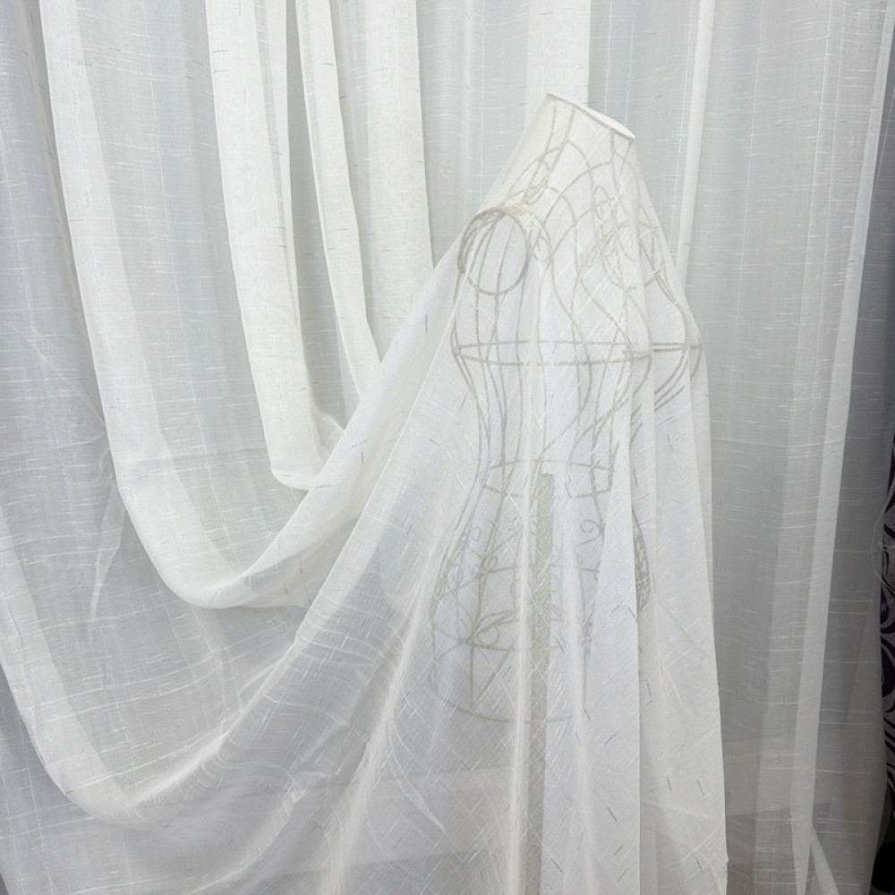 Perdea Alba, Line, tip In cu Broderie Gri, 400cm latime x 270cm inaltime cu rejansa pt sina, CumparaMisim, cod produs: DTD-PD-17