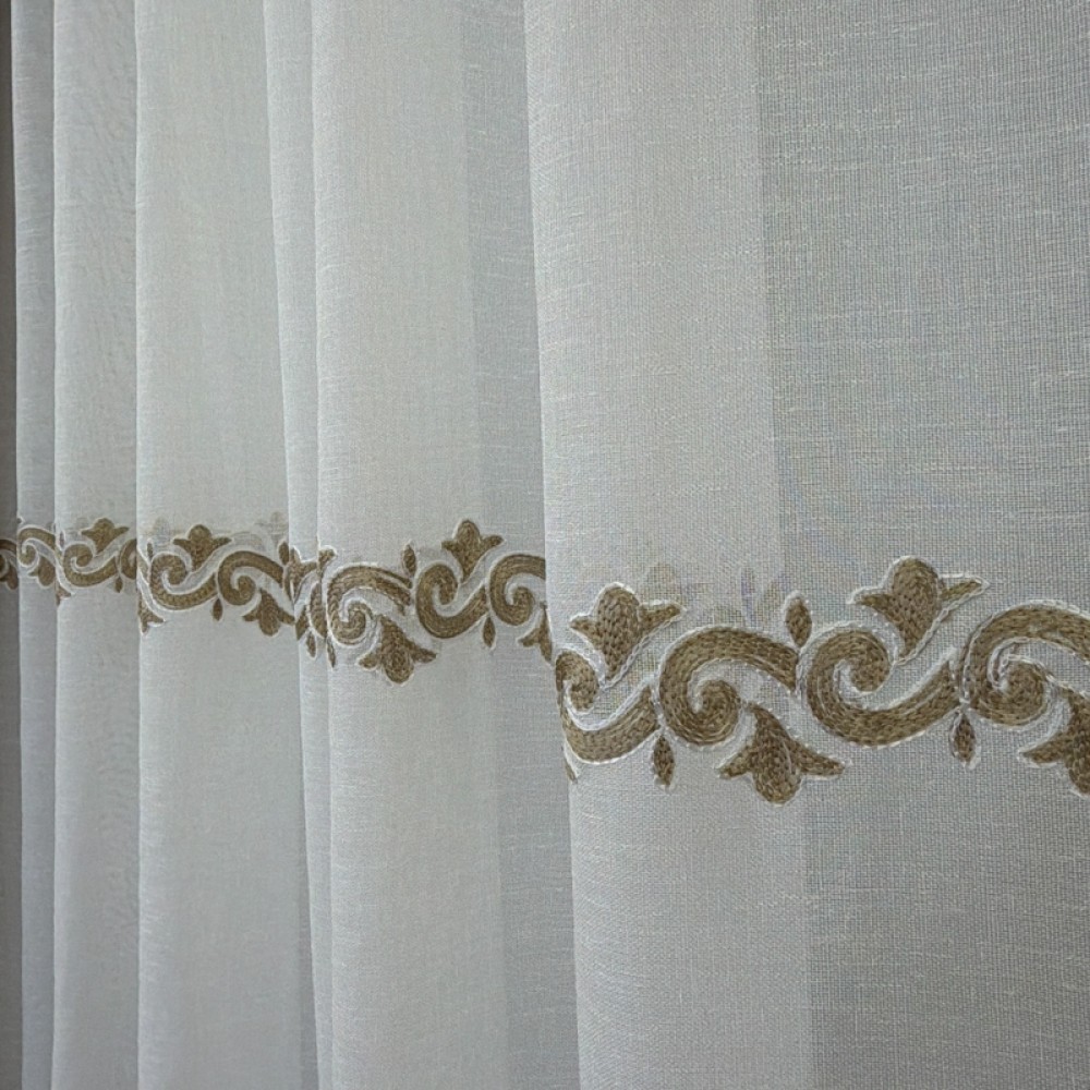 Perdea Alba, Luxury, tip In cu Broderie Bej, 400cm latime x 270cm inaltime cu rejansa pt sina, CumparaMisim, cod produs: DTD-PD-15
