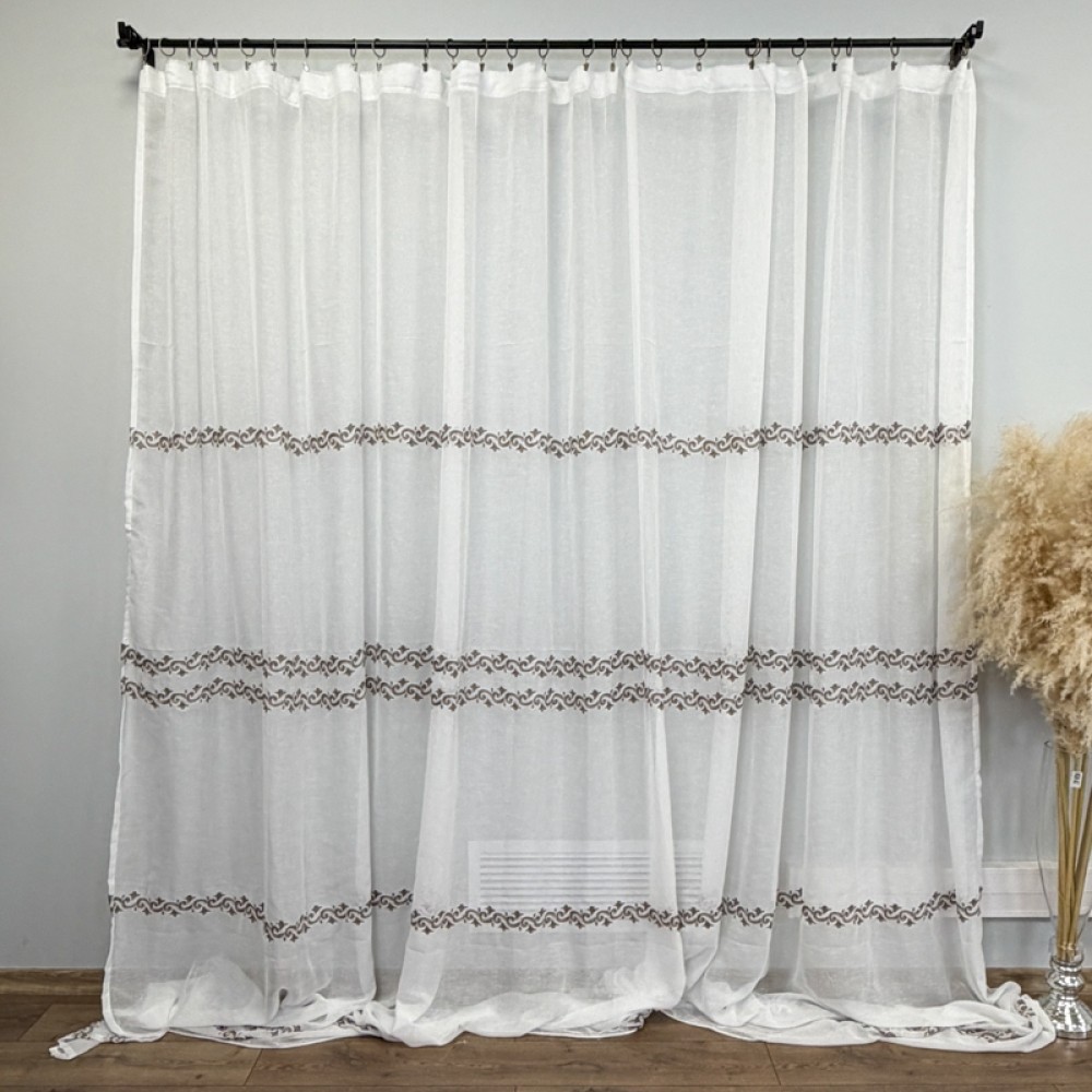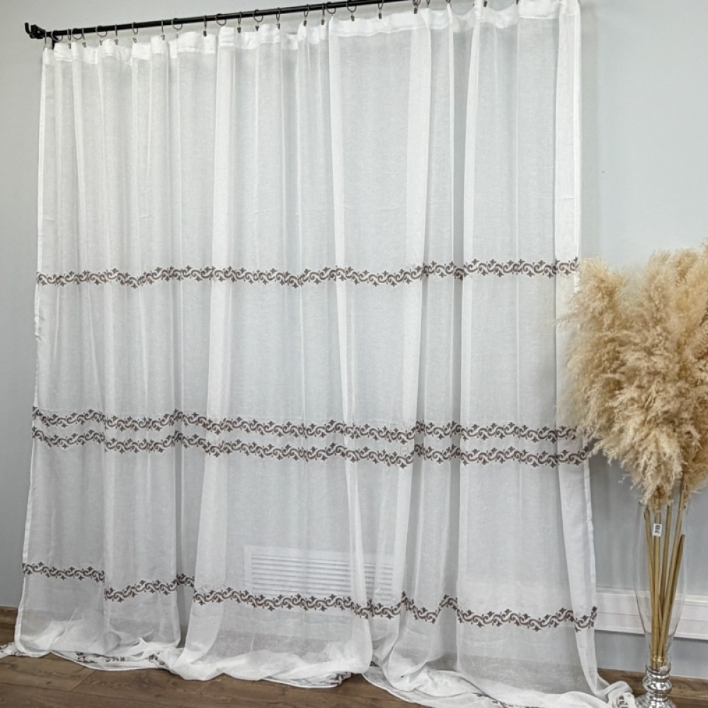 Perdea Alba, Luxury, tip In cu Broderie Maro, 400cm latime x 270cm inaltime cu rejansa pt sina, CumparaMisim, cod produs: DTD-PD-06