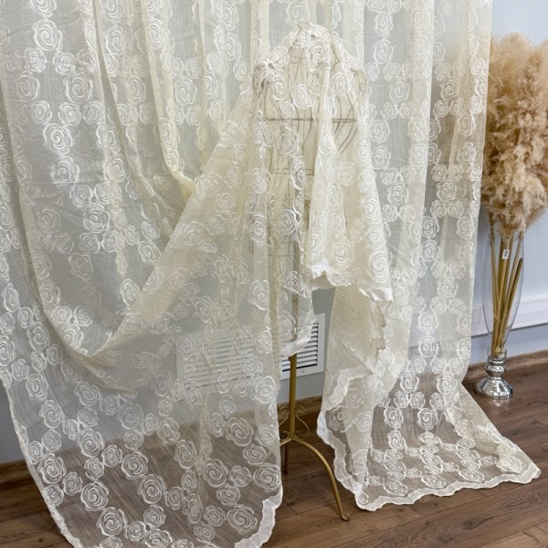 Perdea Crem, Roses, tip In cu Broderie Bej, 400cm latime x 270cm inaltime cu rejansa pt sina, CumparaMisim, cod produs: DTD-PD-07