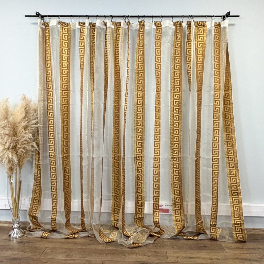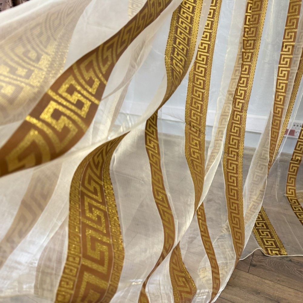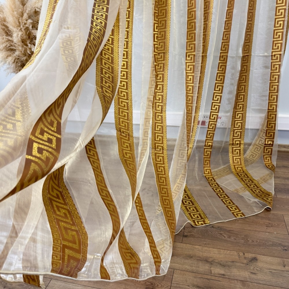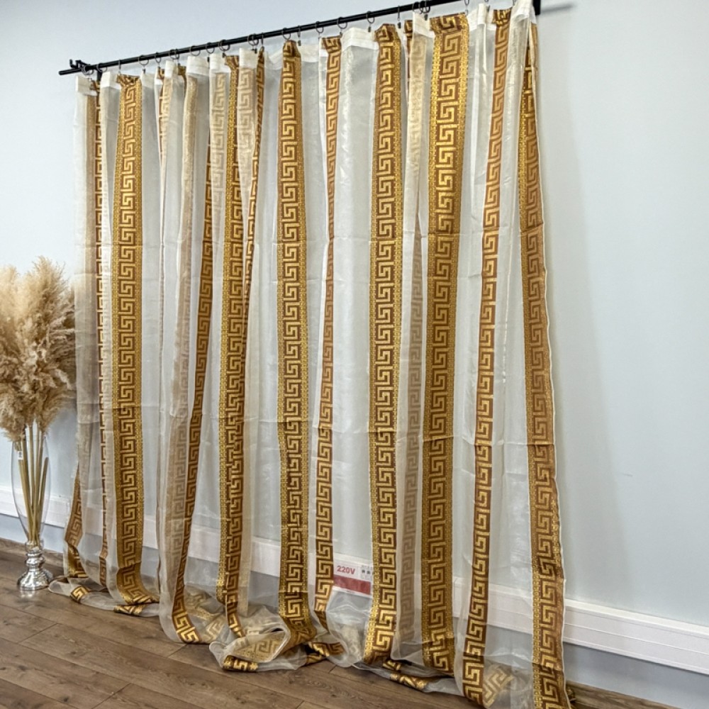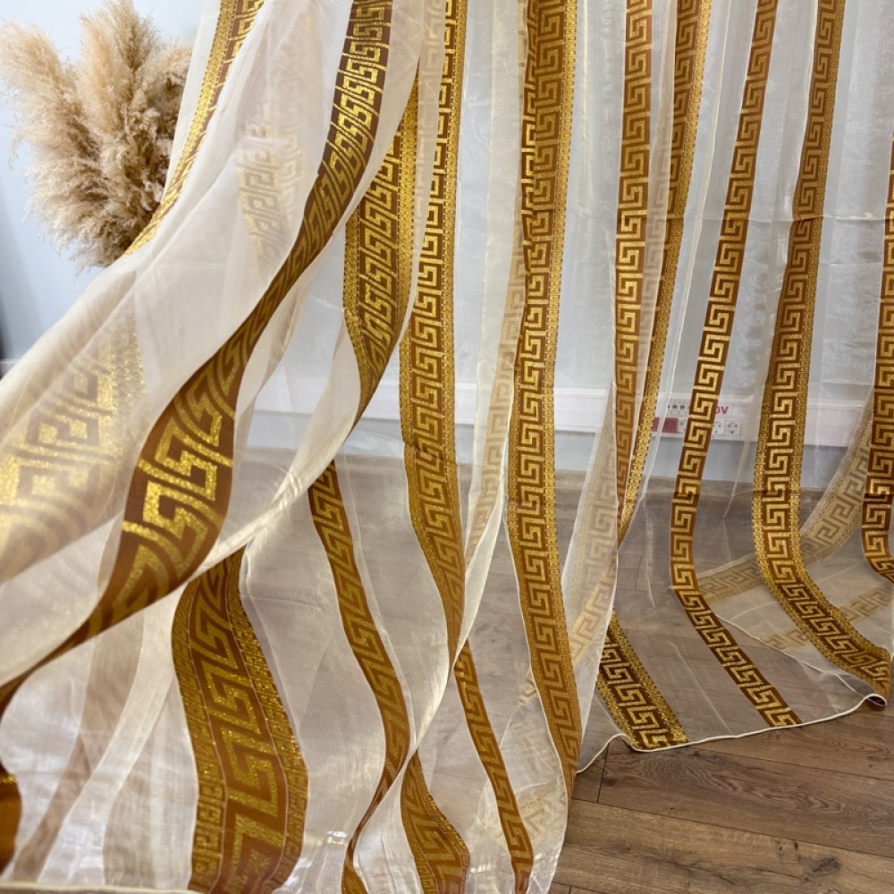 Perdea Greek Model din matase imprimata, Bej, 400cm latime x 270cm inaltime cu rejansa pt sina, CumparaMisim, cod produs: DTD-PD-05