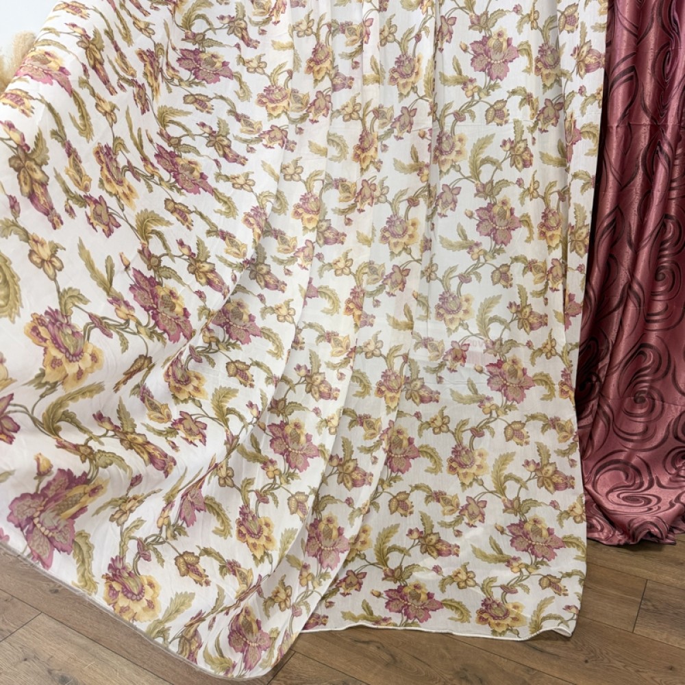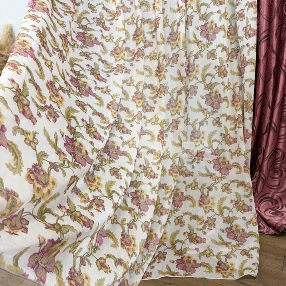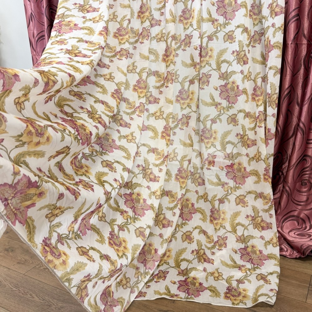 Perdea Iris Roz din matase imprimata, 400cm latime x 270cm inaltime cu rejansa pt sina, CumparaMisim, cod produs: DTD-PD-11