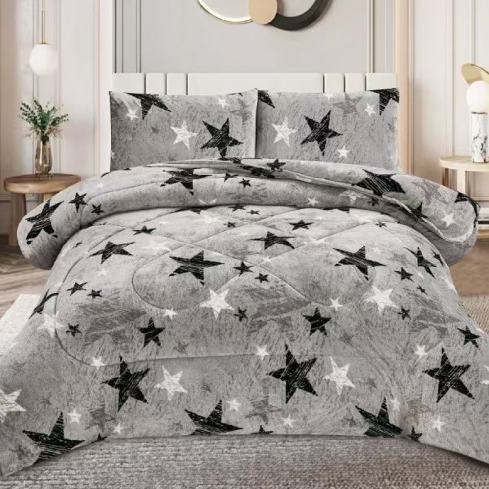 Pilota Cocolino 200x230cm si 2 fete de perna 50x70cm, Gri, Stelute, Pucioasa Fashion Casa, cod produs: SKT-PC-08