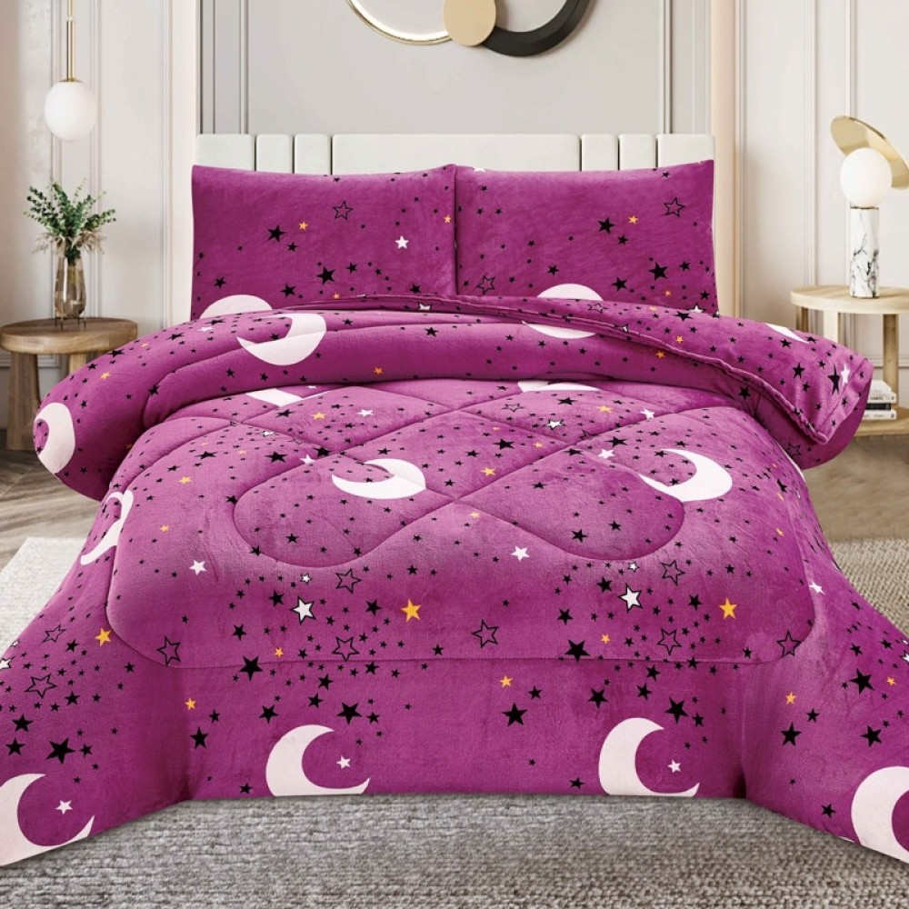 Pilota Cocolino 200x230cm si 2 fete de perna 50x70cm, Mov, Luna si Stele, Pucioasa Fashion Casa, cod produs: SKT-PC-01