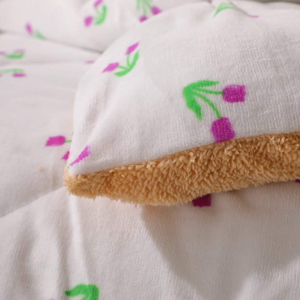 • Două Fețe Diferite, Același Confort: Pilota Cocolino are două fețe, fiecare aducând un plus de stil și funcționalitate. Prima față prezintă un imprimeu viu și atrăgător, identic cu imaginea de prezentare, fiind perfectă pentru un decor modern. Cea de-a doua față este acoperită cu o blăniță bej moale din Sherpa, oferindu-ți un plus de căldură și o senzație deosebit de plăcută la atingere.