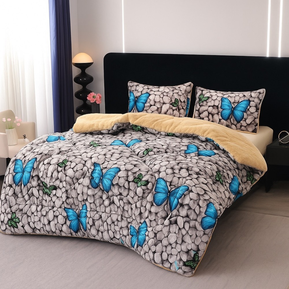 Pilota groasă Cocolino cu blăniță Sherpa este alegerea ideală pentru nopțile reci, oferind confort, căldură și o senzație pufoasă la atingere. Exteriorul moale din microfibră Cocolino combinat cu interiorul călduros din blăniță Sherpa creează o experiență de somn relaxantă și plăcută.