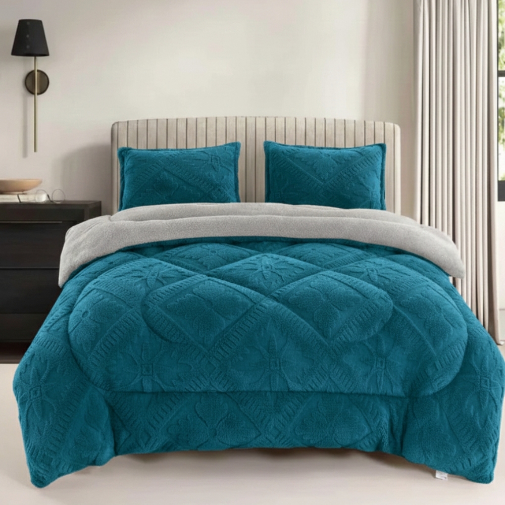 Pilota Cocolino cu blanita 200x230cm si 2 fete de perna 50x70cm, model embosat traditional, Albastru, Pucioasa Fashion Casa, cod produs: TRP-PLT-22