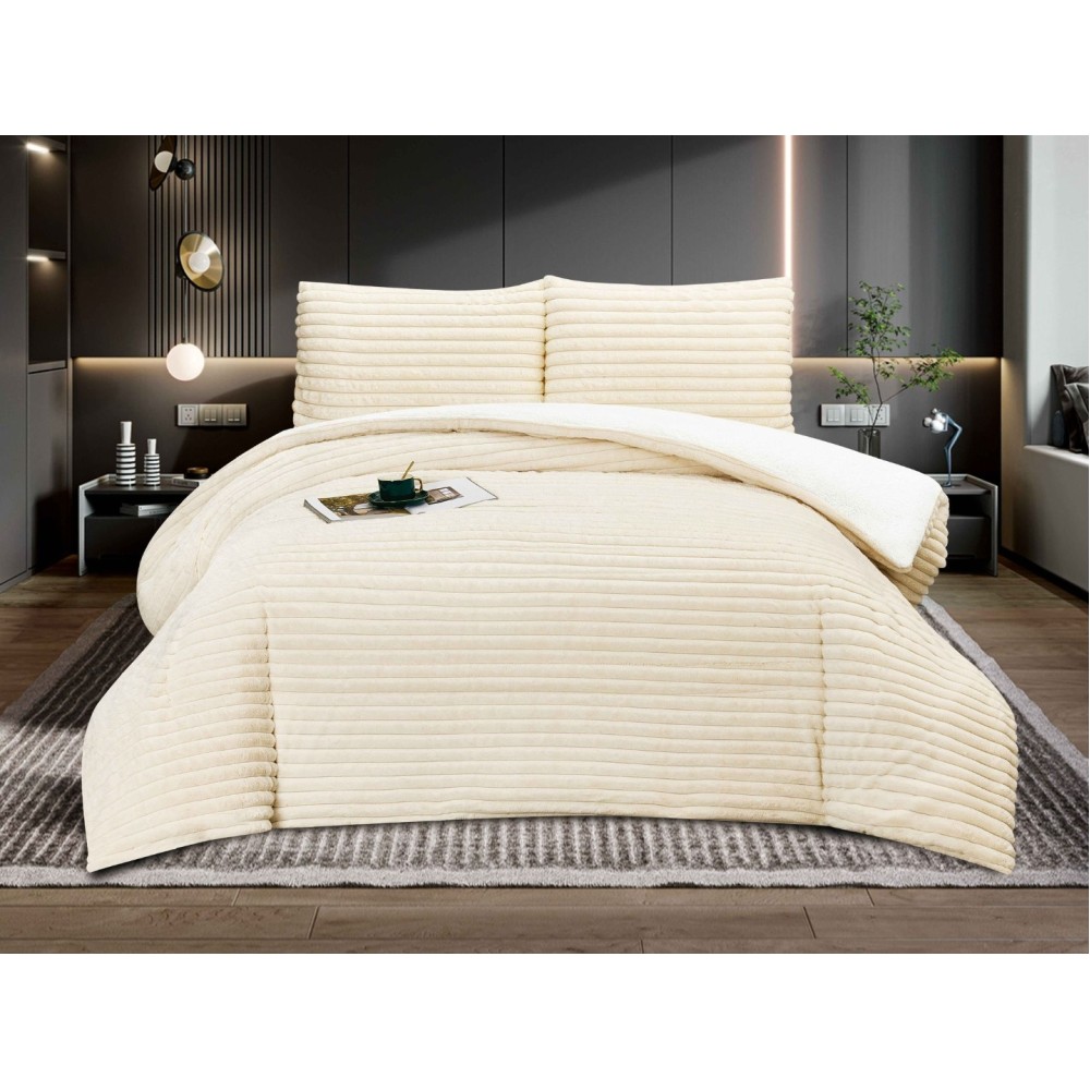 Pilota Cocolino Rabbit, 200x230cm si 2 fete de perna 50x70cm, Dungi Gofrate, Dublata cu Blanita Asortata Sherpa, Crem, Pucioasa Fashion Casa, cod produs: SKT-PR-04