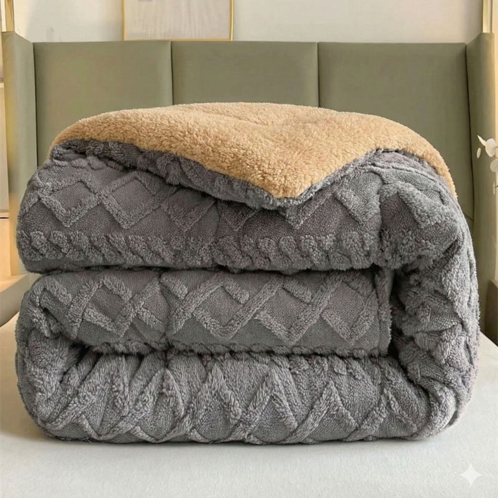 Pilota CoCoLiNo Sherpa tip Tricotaj cu blanita, matlasata, 200x230cm, Gri inchis, cod produs: YOP122