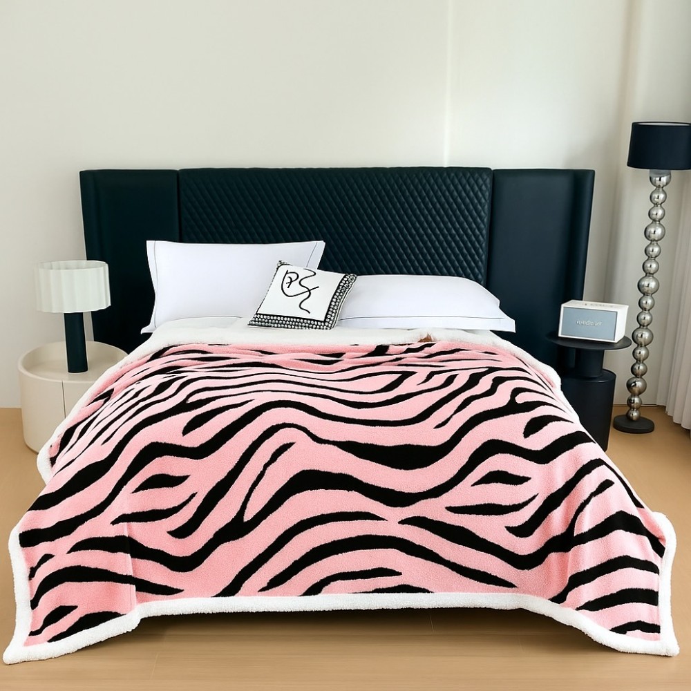 Pătură Cocolino Groasa cu Blăniță Sherpa, 200x230 cm, Zebra, Roz deschis, Pucioasa Fashion Casa, cod produs: TRP-PAZ-10