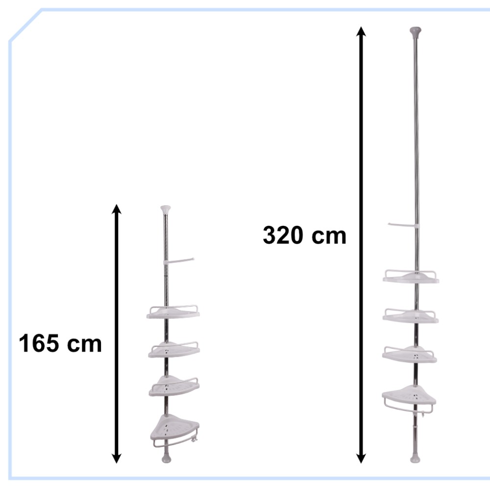 Raftul de colț pentru baie este soluția perfectă pentru lipsa de spațiu în baie și poate fi amplasat în duș fără niciun instrument. Pur și simplu pliați raftul și plasați-l acolo unde doriți. Designul telescopic îi va permite să se potrivească perfect în baia dumneavoastră!
