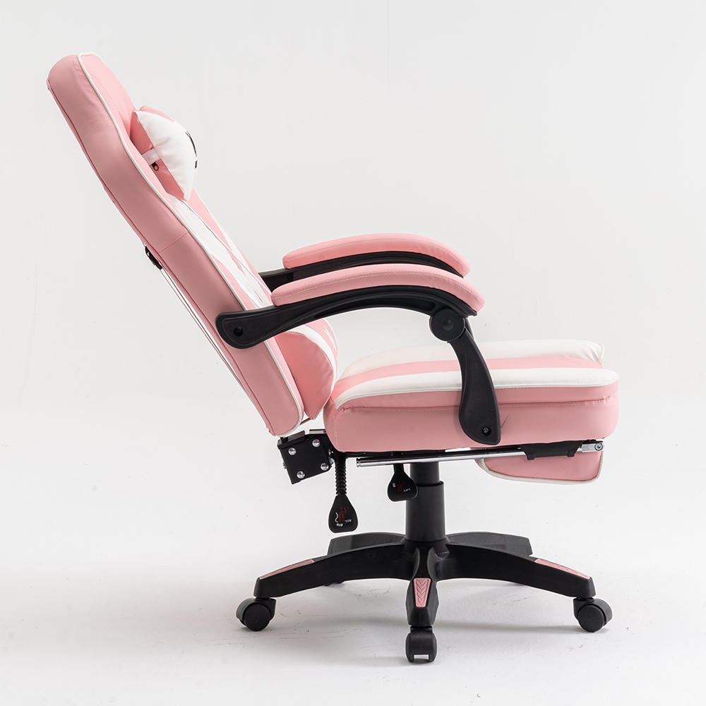 Acest scaun gaming roz este echipat cu o serie de funcționalități ajustabile care includ înălțimea reglabilă, mecanismul de înclinare, cotiere ajustabile și un spătar rabatabil. Astfel, îți poți personaliza experiența pentru a găsi poziția perfectă, maximizând confortul și performanța.