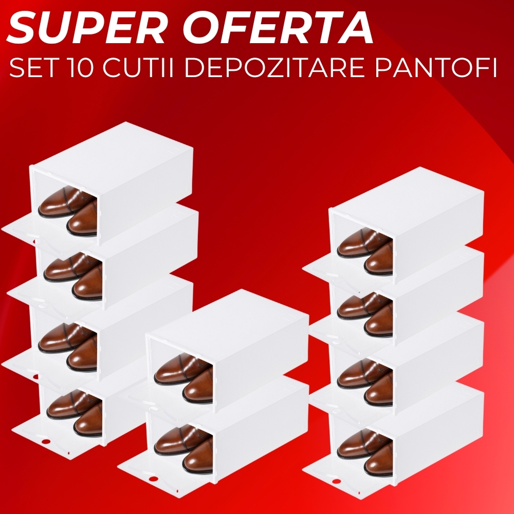 Cutiile de plastic îți vor ușura păstrarea ordonată a garderobei sau a dulapului! Toți pantofii dvs. vor fi depozitați în containere care pot fi stivuite sau una lângă alta, în funcție de nevoile dvs.