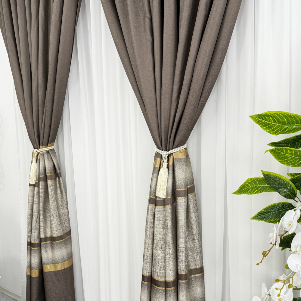 Ceea ce face draperiile cu adevărat remarcabile sunt detaliile aurii. Aceste insertii metalizate adaugă un element de strălucire și glamour, creând un contrast elegant cu textura mată a materialului. Fie că sunt plasate într-un living, într-un dormitor sau într-o sală de mese, draperiile cu insertii aurii atrag atenția și conferă o notă de opulență.