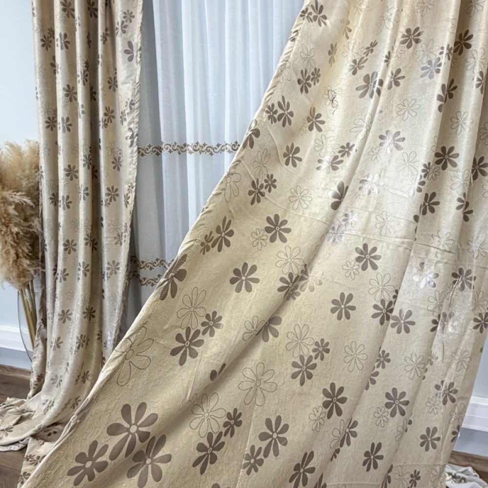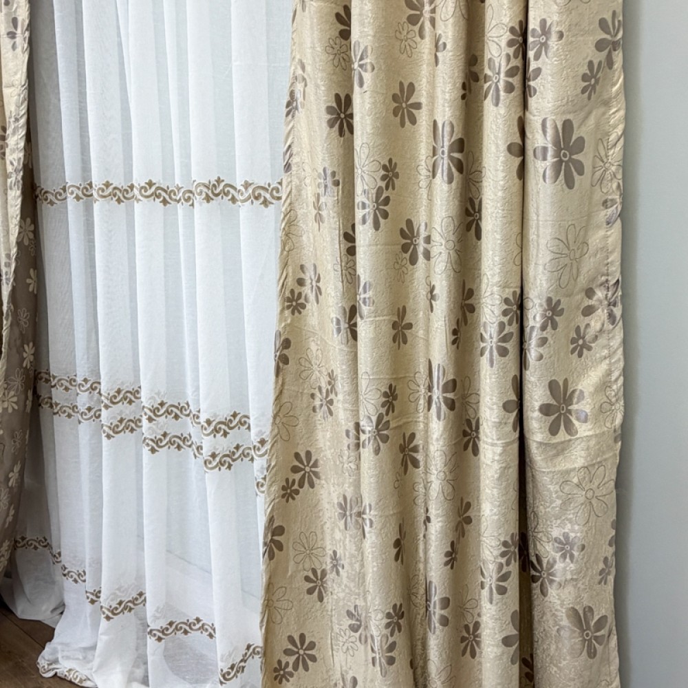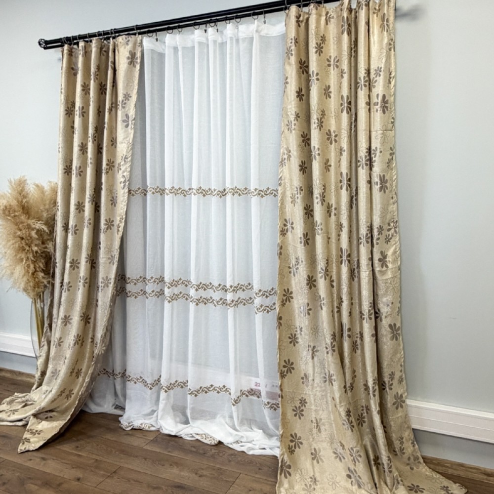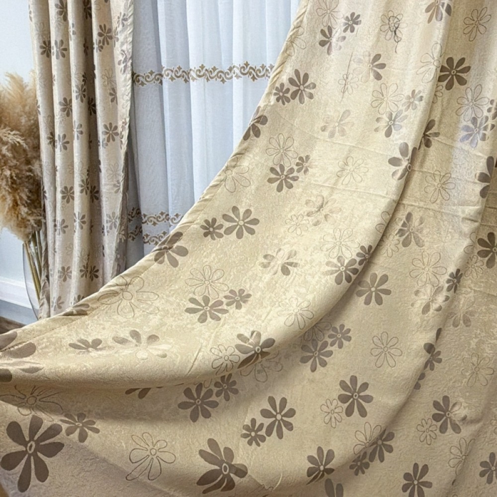 Set 2 bucati de Draperie Jacquard, Flori, 150cm latime x 270cm înălțime, cu rejansa pt sina, Bej, CumparaMisim, cod produs: DTD-DR-11