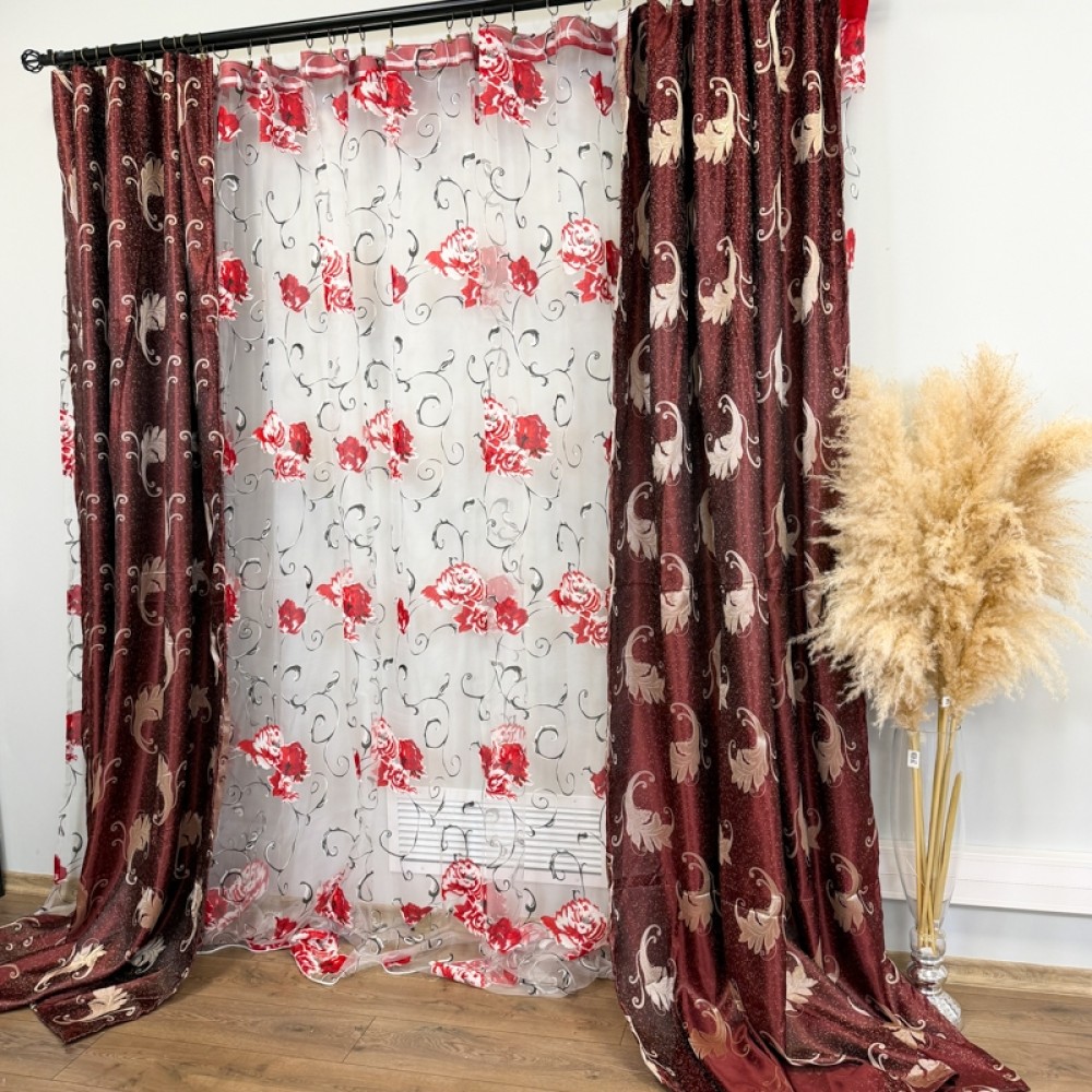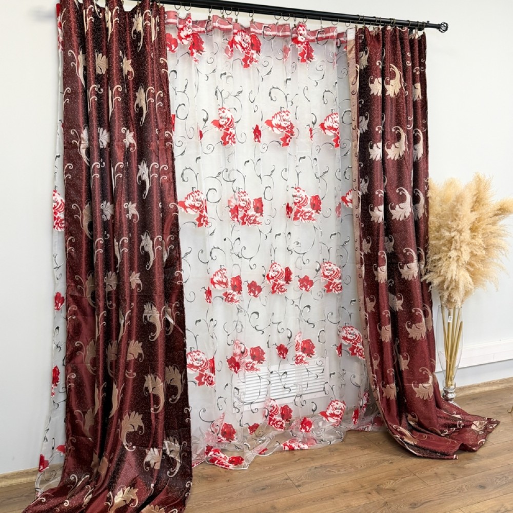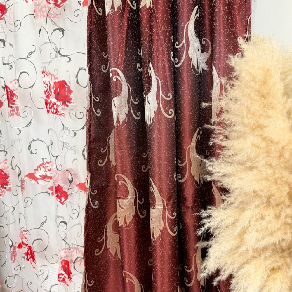Set 2 bucati de Draperie Jacquard, Leaves, 150cm latime x 270cm înălțime, cu rejansa pt sina, Grena, CumparaMisim, cod produs: DTD-DR-08