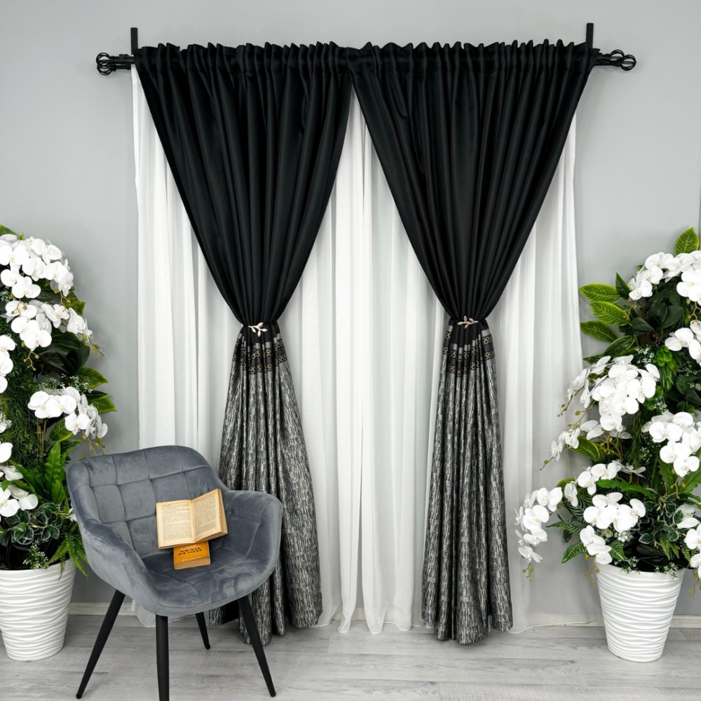 Aceste draperii nu sunt doar un element de decor, ci și o declarație a bunului gust și a stilului sofisticat al proprietarului. Cu o astfel de alegere, încăperea devine cu adevărat remarcabilă, transformând orice spațiu într-un sanctuar al luxului și al eleganței.