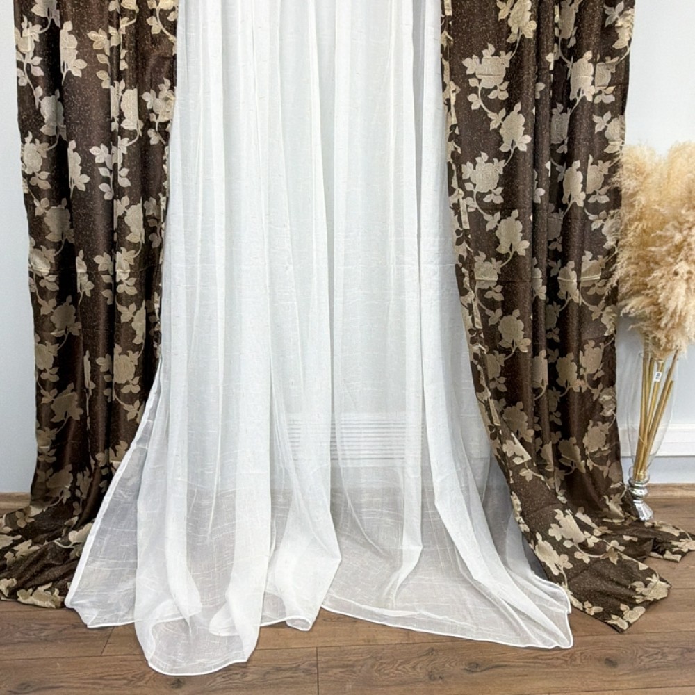Set 2 Draperii Jacquard, Roses, 150cm latime x 270cm înălțime, Maro + Perdea 400cm latime x 270cm inaltime, tip in cu broderie Lines, CumparaMisim, cod produs: DTD-ST-18
