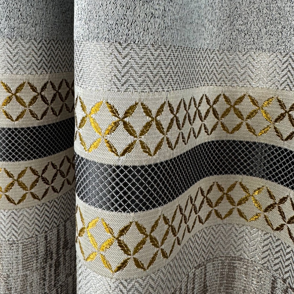 Ceea ce face draperiile cu adevărat remarcabile sunt detaliile aurii. Aceste insertii metalizate adaugă un element de strălucire și glamour, creând un contrast elegant cu textura mată a materialului. Fie că sunt plasate într-un living, într-un dormitor sau într-o sală de mese, draperiile cu insertii aurii atrag atenția și conferă o notă de opulență.