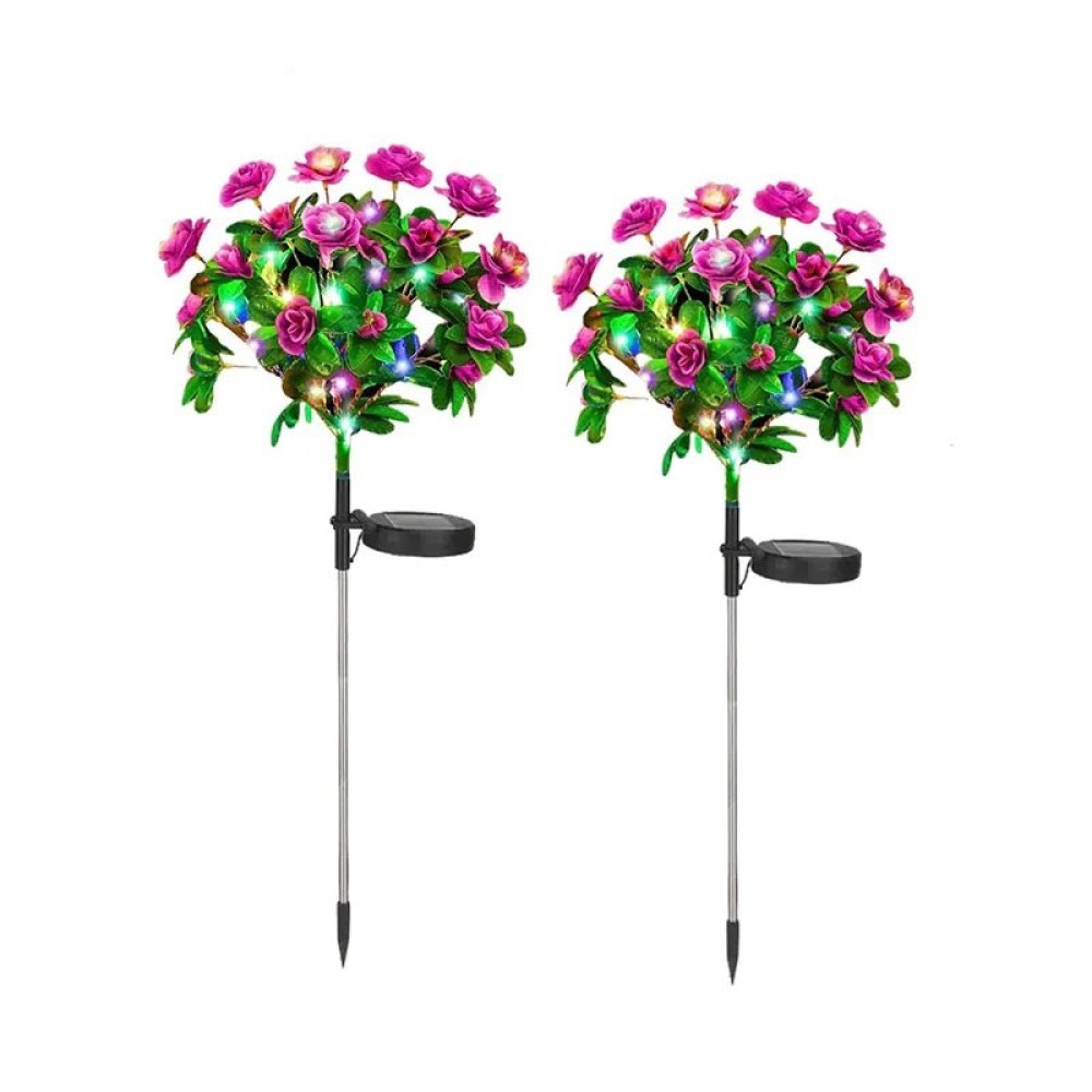 Setul de 2 lămpi solare decorative cu mini trandafiri este potrivit pentru iluminat exterior ambiental și decorarea spațiilor verzi. Designul floral oferă un aspect elegant, iar lumina LED alb cald contribuie la crearea unei atmosfere plăcute în grădină, pe terasă sau pe alei.