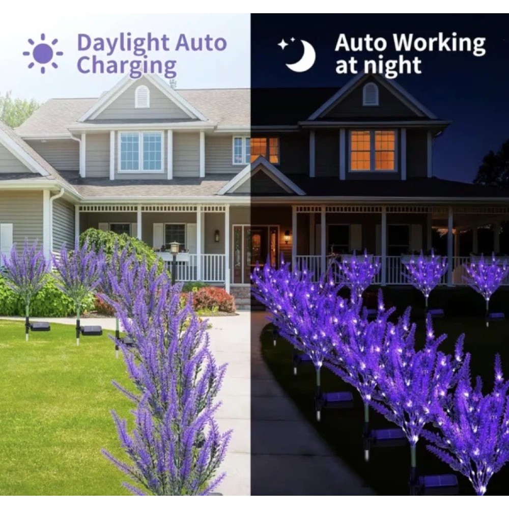 Setul de 2 lămpi solare decorative tip lavandă este destinat iluminatului exterior și decorării spațiilor verzi. Designul floral inspirat din lavandă oferă un aspect natural, potrivit pentru grădină, alei sau terasă, completat de o lumină ambientală discretă.