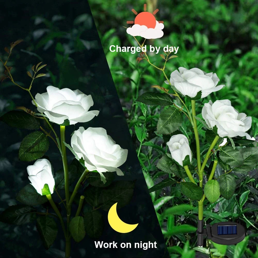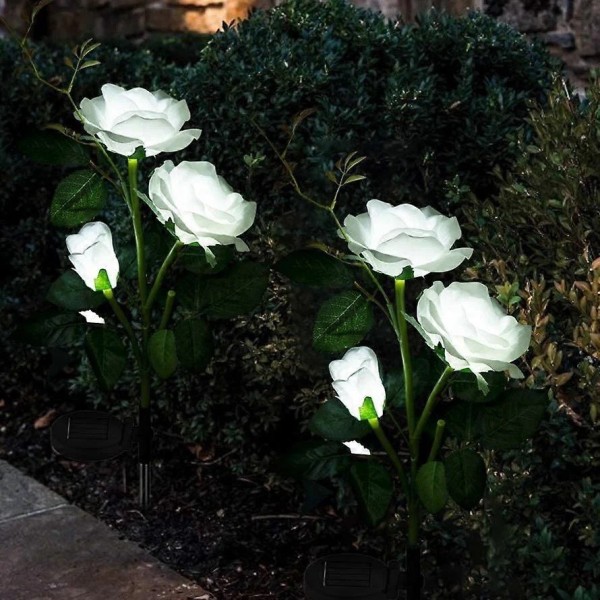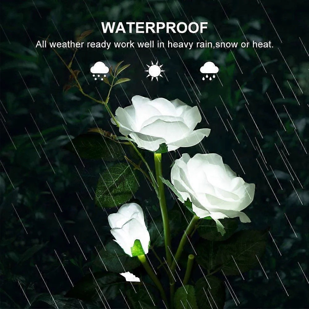 Setul de 2 lămpi solare decorative tip trandafiri este destinat iluminatului exterior și decorării spațiilor verzi. Designul floral inspirat din trandafiri oferă un aspect natural, potrivit pentru grădină, alei sau terasă, completat de o lumină ambientală discretă.