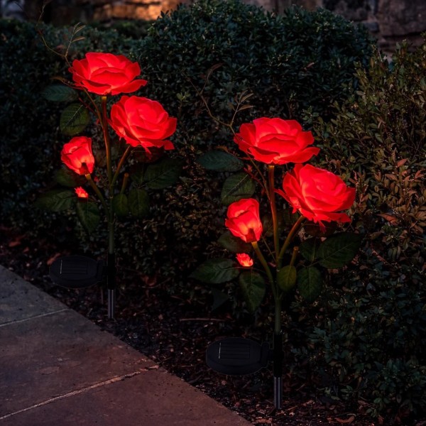 Set 2 Lămpi Solare Decorative Tip Trandafiri Rosii – Iluminare LED, Design Elegant și Funcționare Automată, cod produs: INV-LG-11