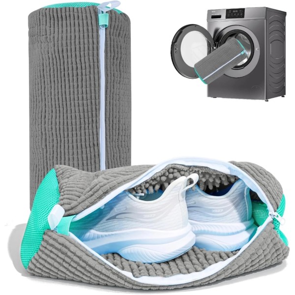 Păstrează-ți încălțămintea curată și ca nouă, fără riscul de deteriorare, cu setul de 2 saci pentru spălat încălțăminte, special concepuți pentru adidași, pantofi sport și încălțăminte casual. Acești săculeți asigură o curățare eficientă, protejând în același timp atât pantofii, cât și tamburul mașinii de spălat.