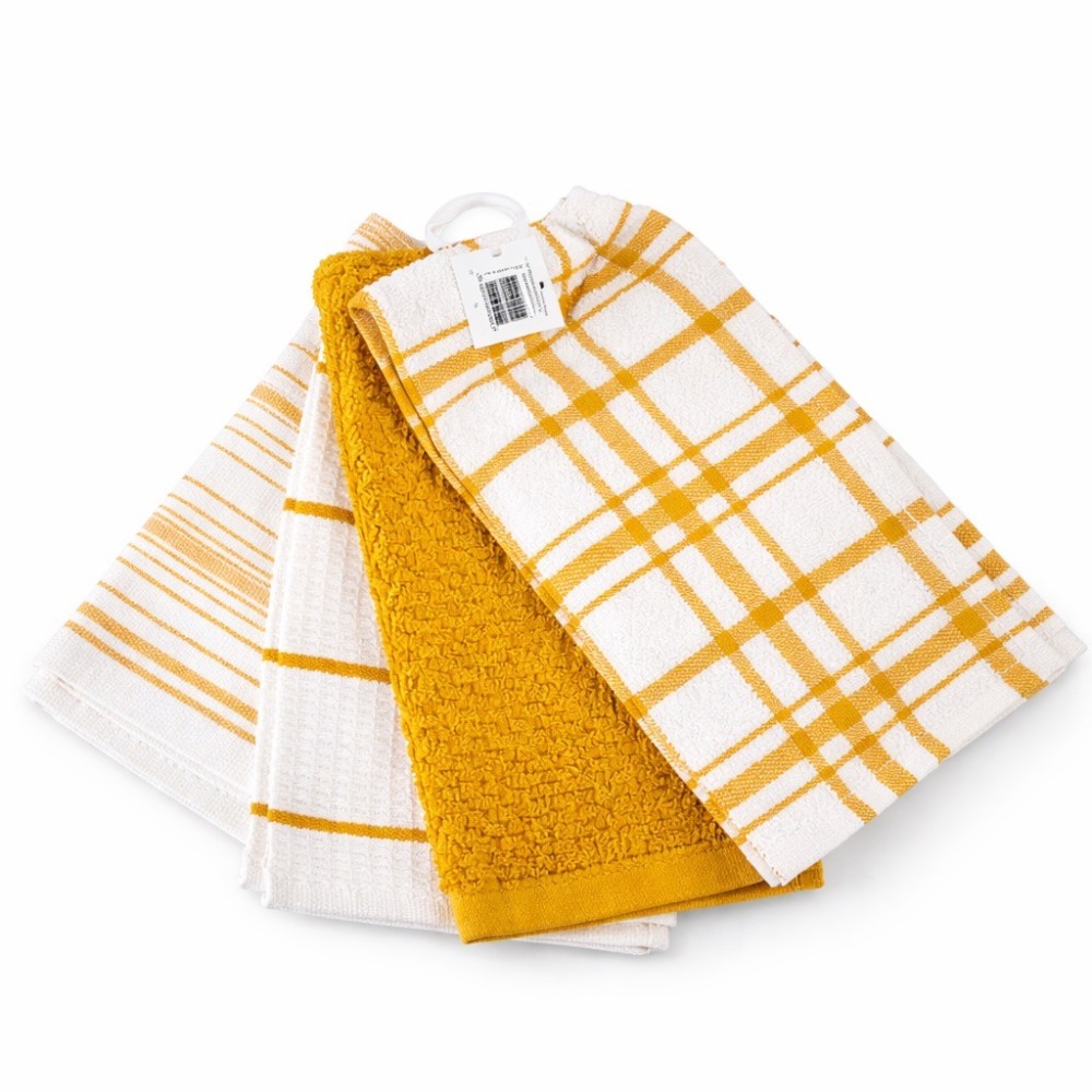 Set 4 prosoape mici pt Bucatarie, 30x55cm, din 100% bumbac pakistanez, 350g, Line, Alb-Galben, Mid-Tex, cod produs: MDT-KTC-04