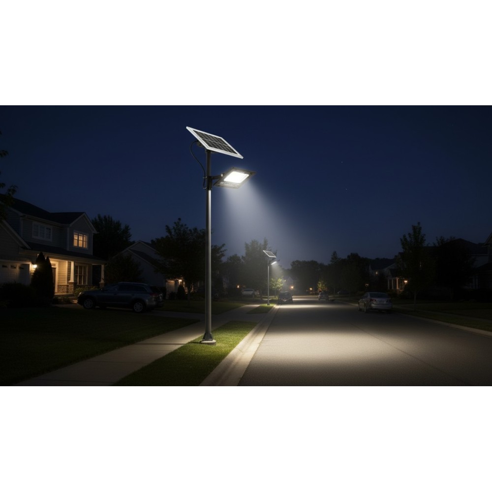 Transforma-ti curtea, gradina sau orice spatiu exterior cu ajutorul proiectorului LED solar, echipat cu panou fotovoltaic monocristalin de inalta eficienta si telecomanda pentru control complet. Acest sistem modern capteaza energia solara pe parcursul zilei, o stocheaza in acumulatorul integrat si o transforma intr-o sursa de lumina puternica si economica pe timpul noptii.