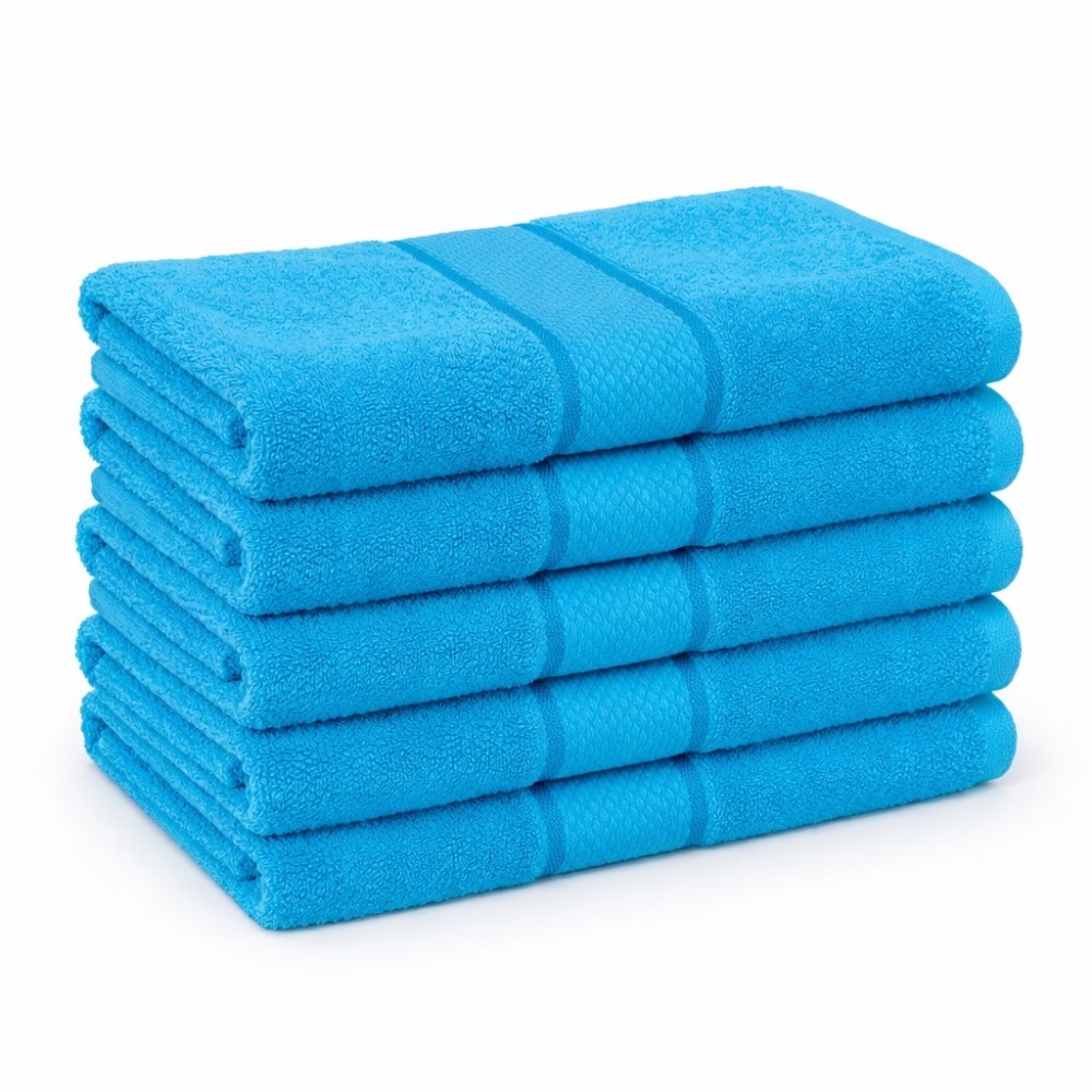 Set 5 prosoape medii 50x90cm, din 100% bumbac pakistanez, 400g, Line, Bleu, Mid-Tex, cod produs: MDT-PM400-02