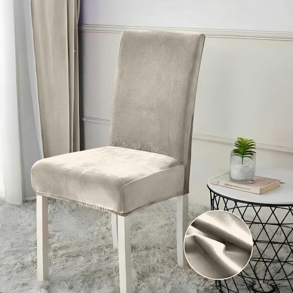 Set 6 huse PREMIUM universale pentru scaun, CATIFEA Bej, Johny Home Pucioasa, cod produs: SPR-HE-07