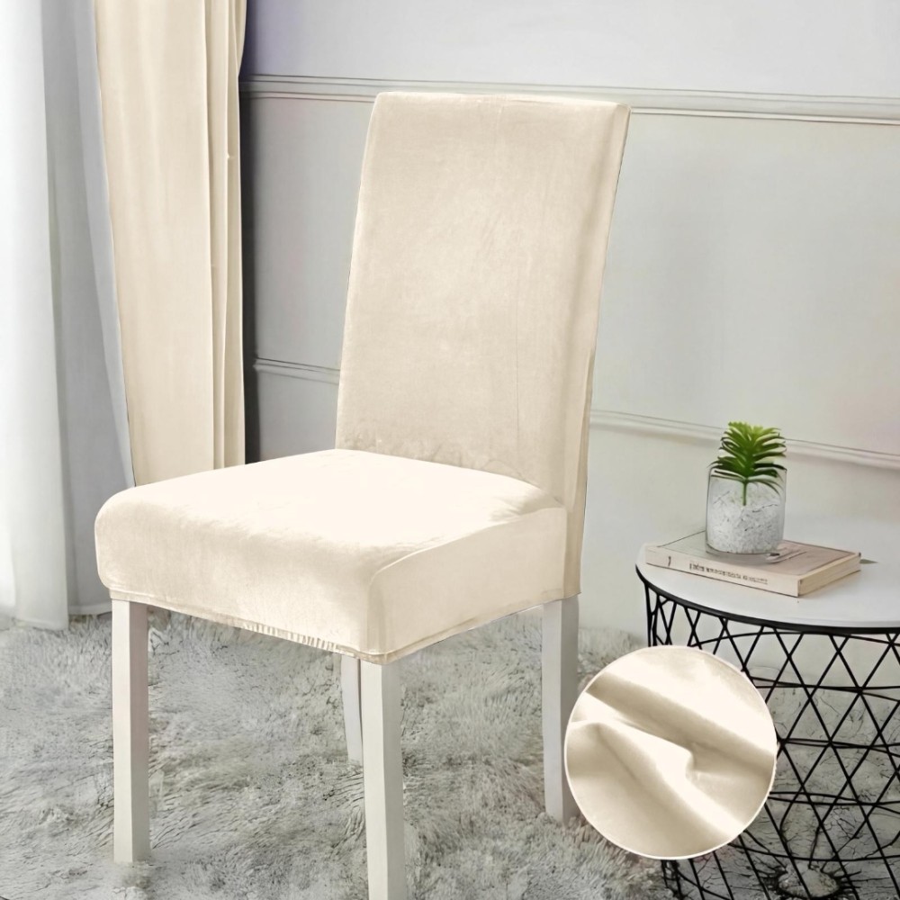 Set 6 huse PREMIUM universale pentru scaun, CATIFEA Crem, Johny Home Pucioasa, cod produs: SPR-HE-03